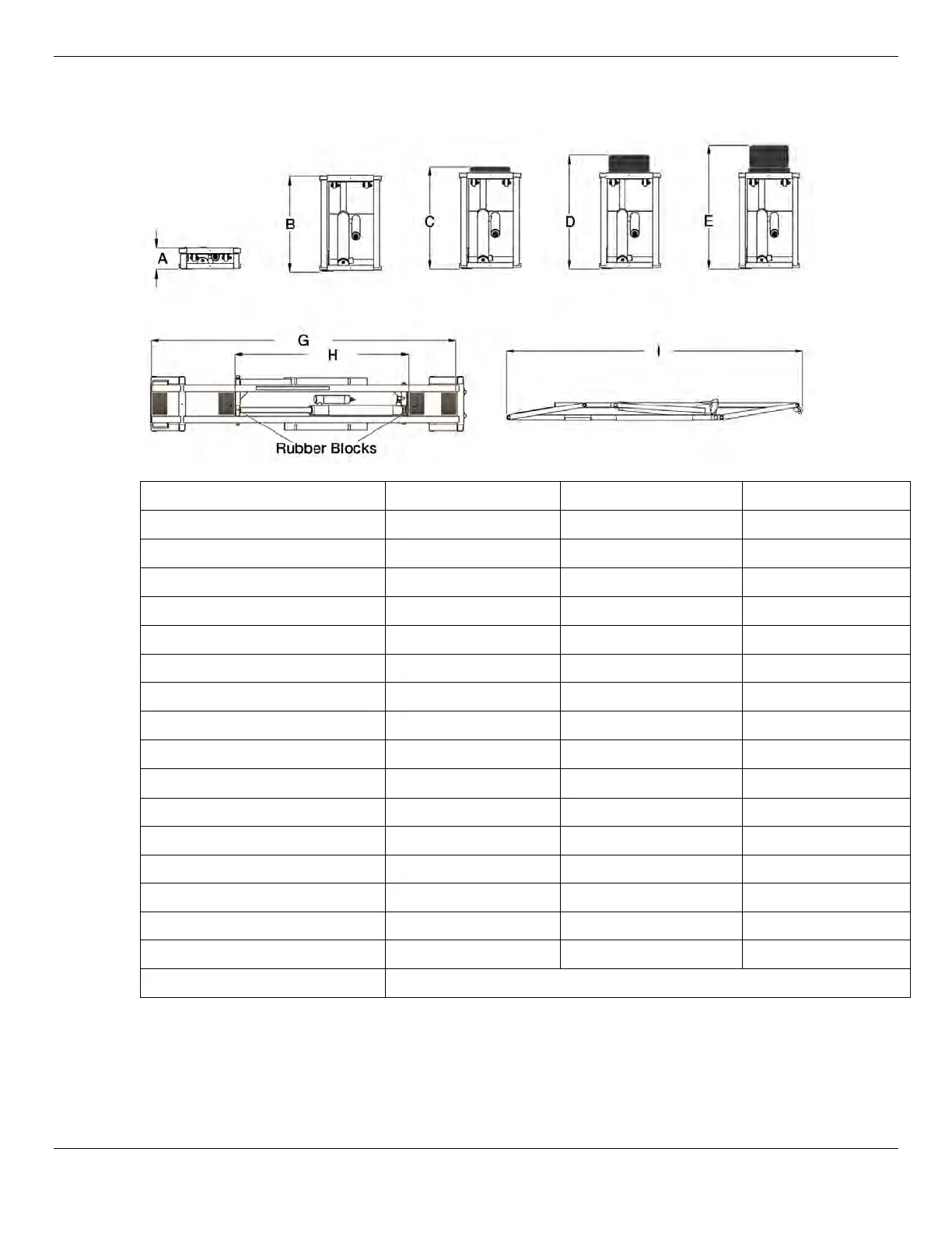 E Height, stacked blocks 21" / 533 mm 24" / 610 mm 24.5" / 622 mm
