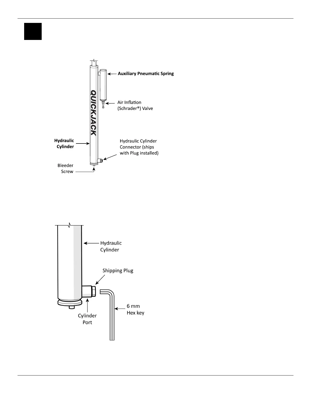 Each QuickJack Frame has one Auxiliary Pneumatic Spring and one Hydraulic Cylinder.