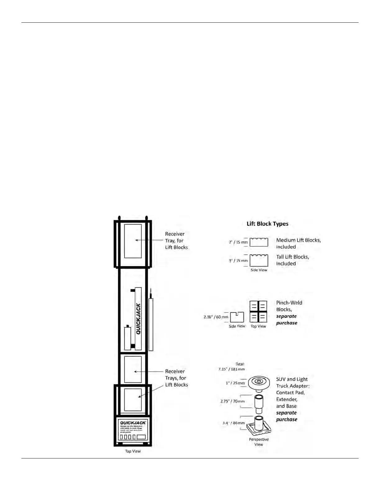 • Medium/Tall. Four Medium and four Tall Lift Blocks are included with each QuickJack. You can