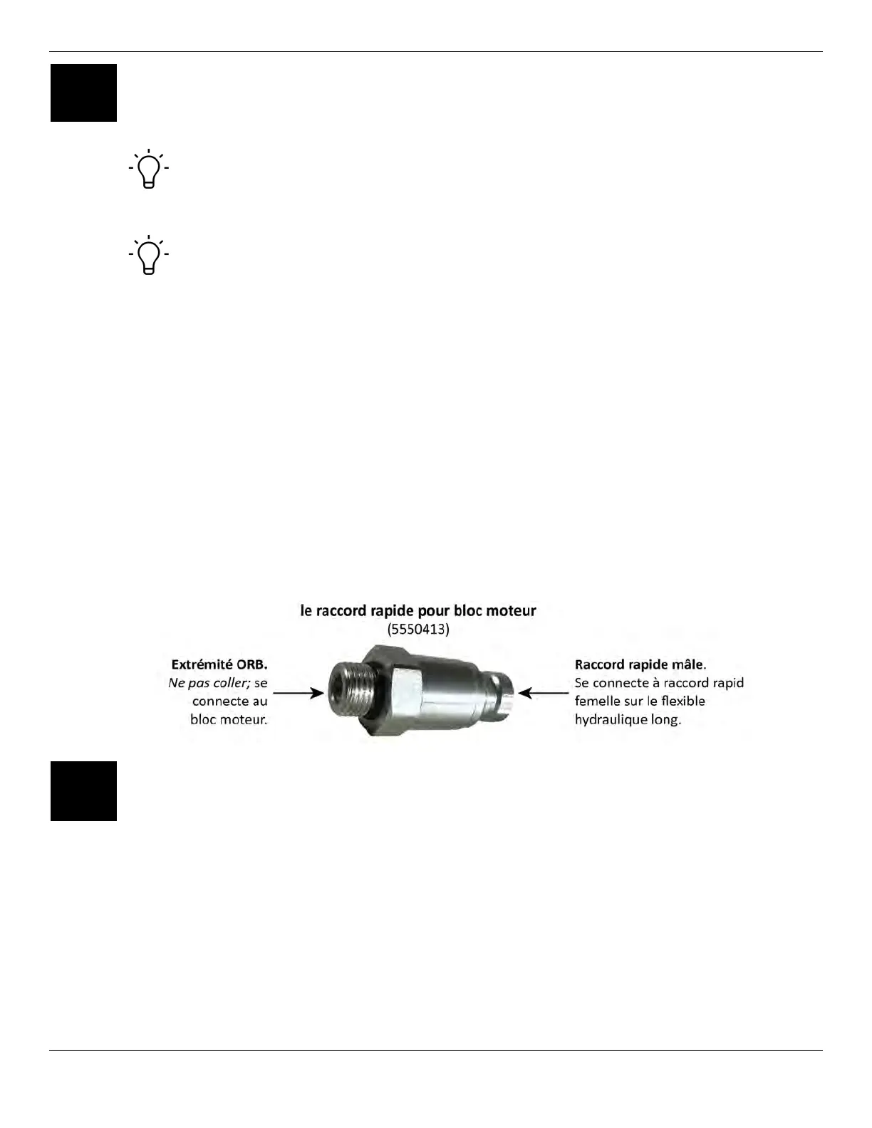 hydrauliques à l'avant de l'unité de puissance ; faites de même pour le deuxième raccord Quick-Connect sur