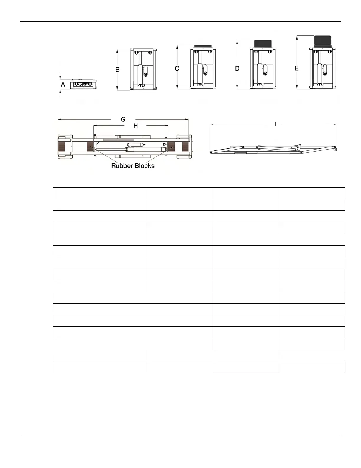 H Block position, min spread 47.4" / 1,205 mm 37.4" / 951 mm 37.4" / 951 mm