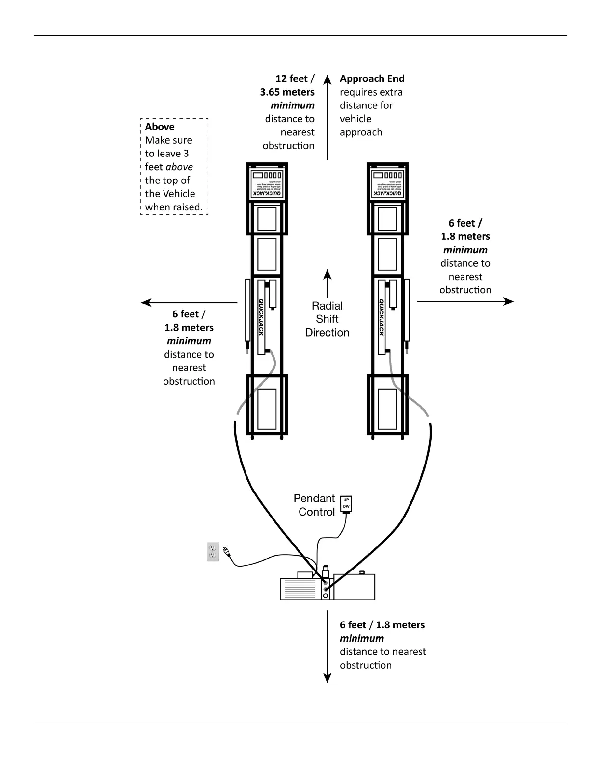 Do not drive Vehicle on Hydraulic Hoses, Power Unit, or QuickJack Frames.