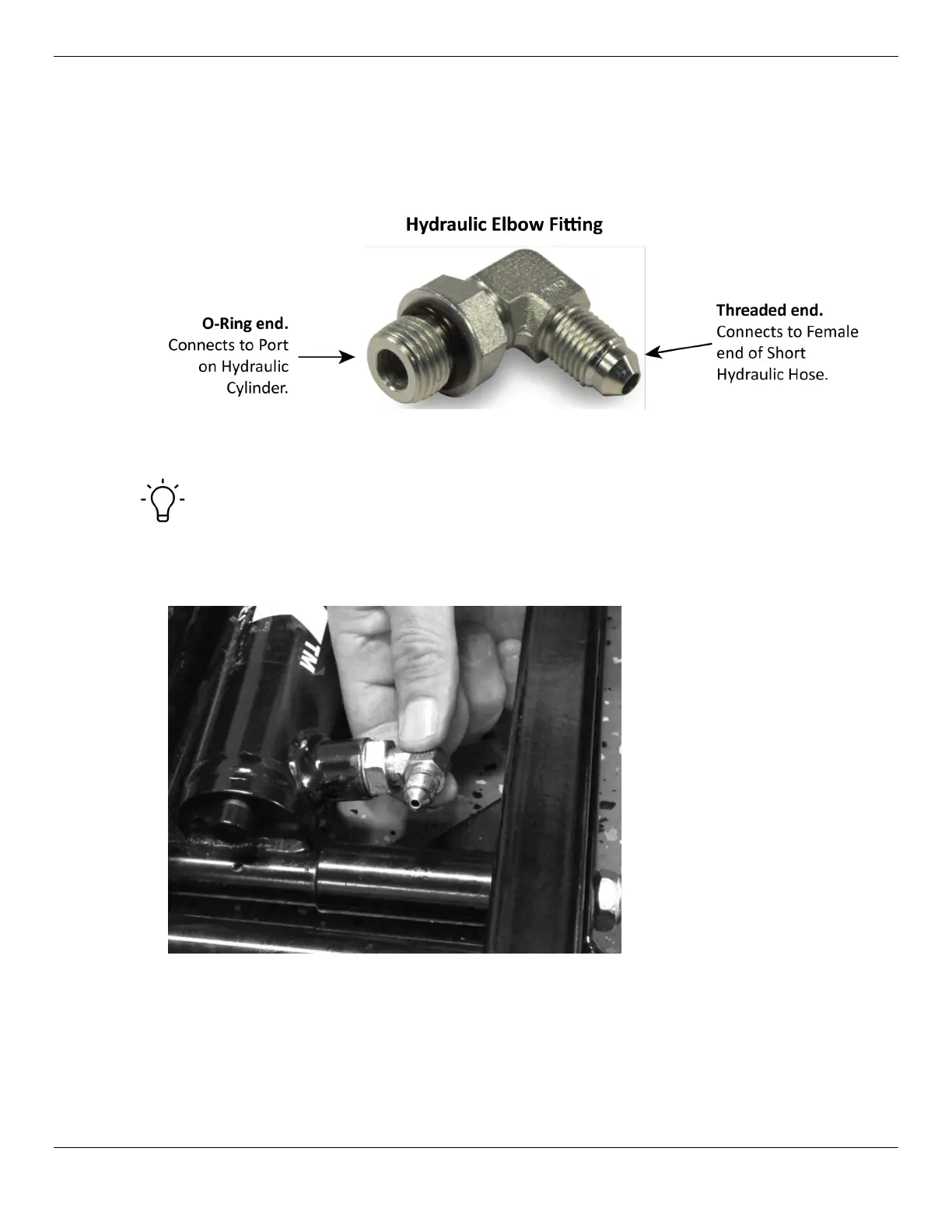 2. Get an Hydraulic Elbow Fitting from the Parts Bag; screw the O-ring fitting end into the Hydraulic