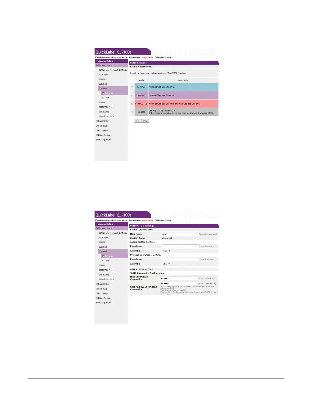 4 Select the check box of the SNMP version to be used in STEP1, and then click To STEP2.