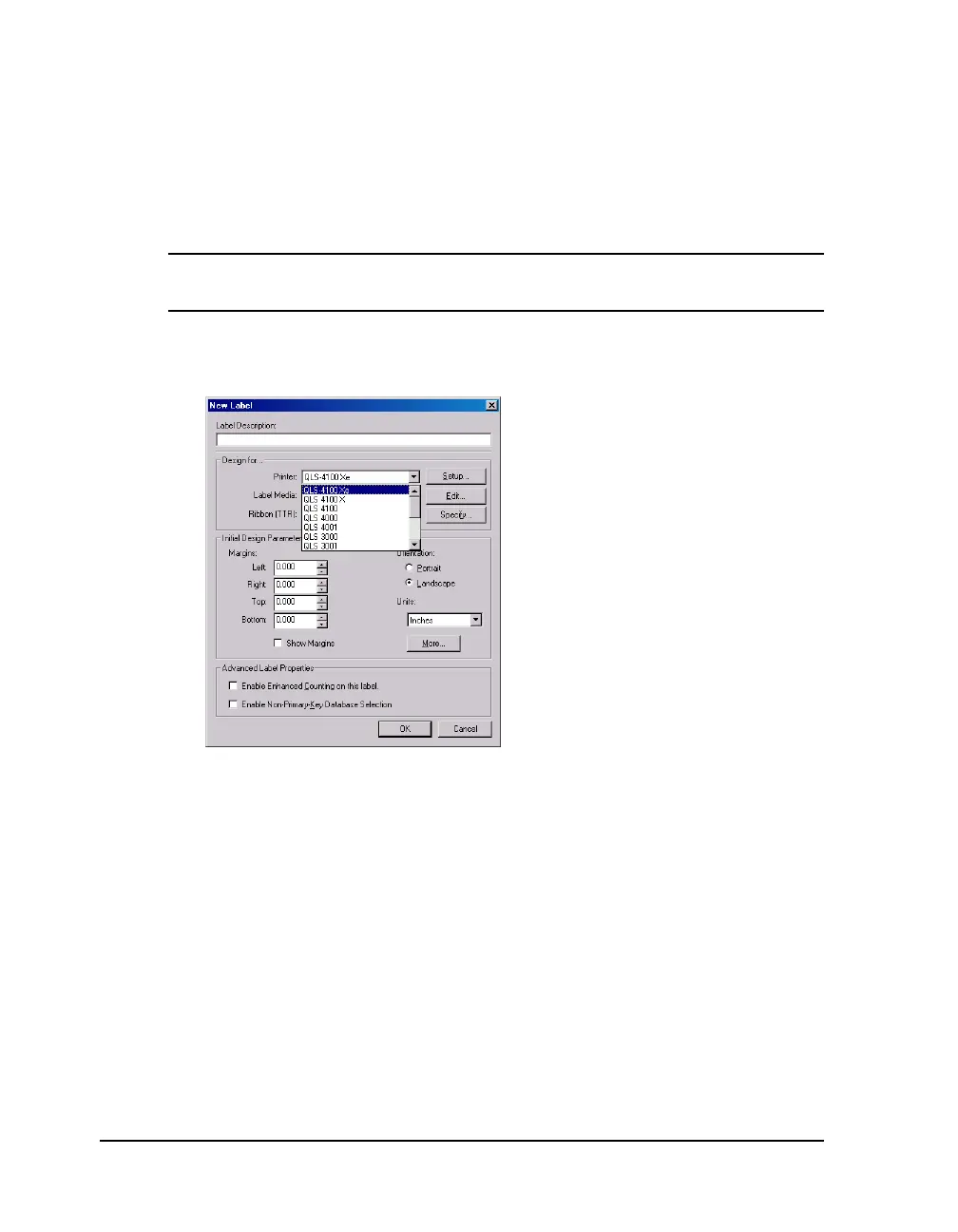 2 Select QLS 4100Xe from the Printer pull-down menu list.