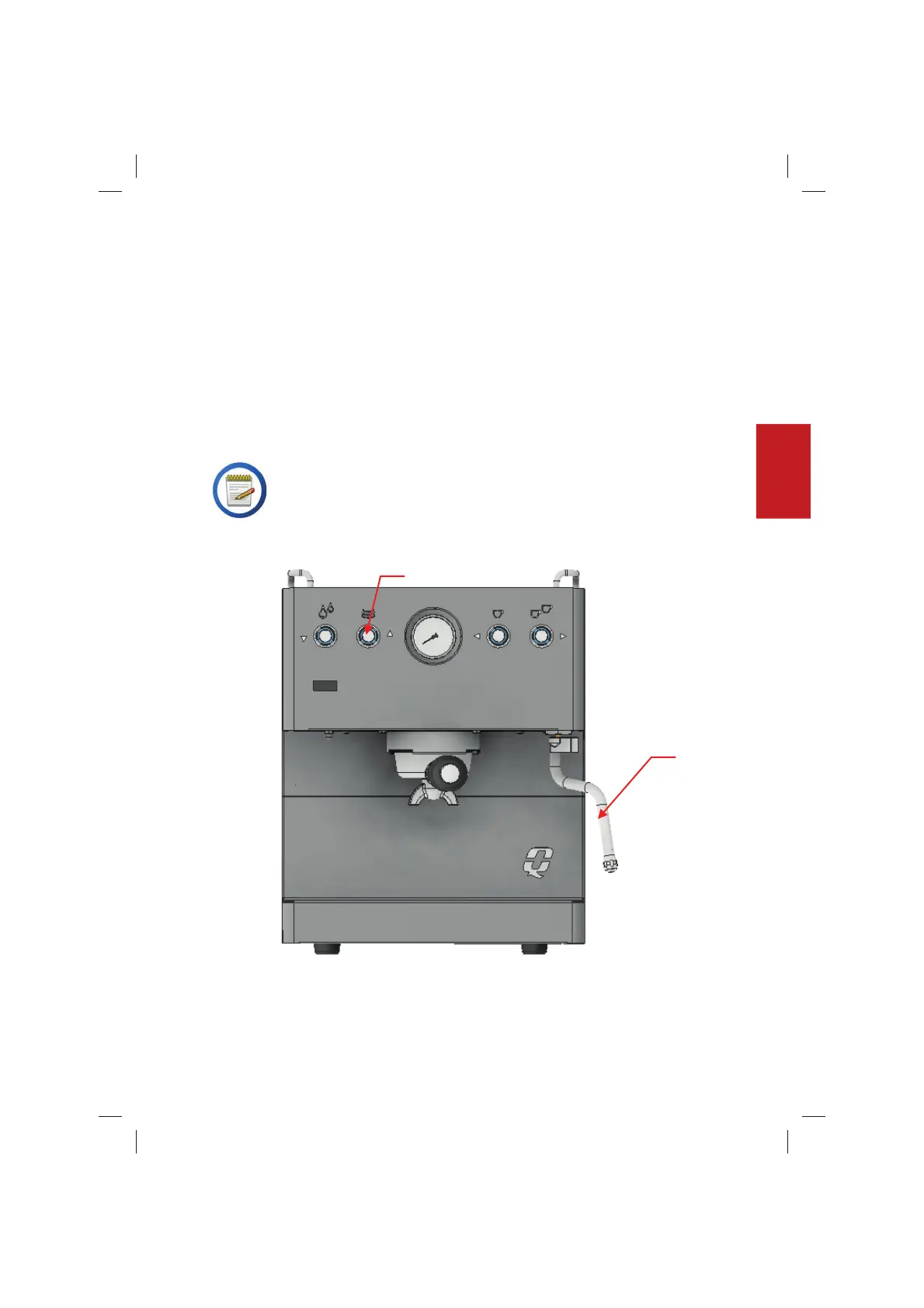 x Press the steam button (1), wait a few seconds and drain the remaining water