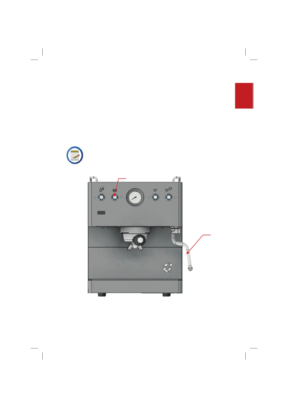 x Premere il pulsante vapore (1), attendere alcuni secondi e scaricare l’acqua