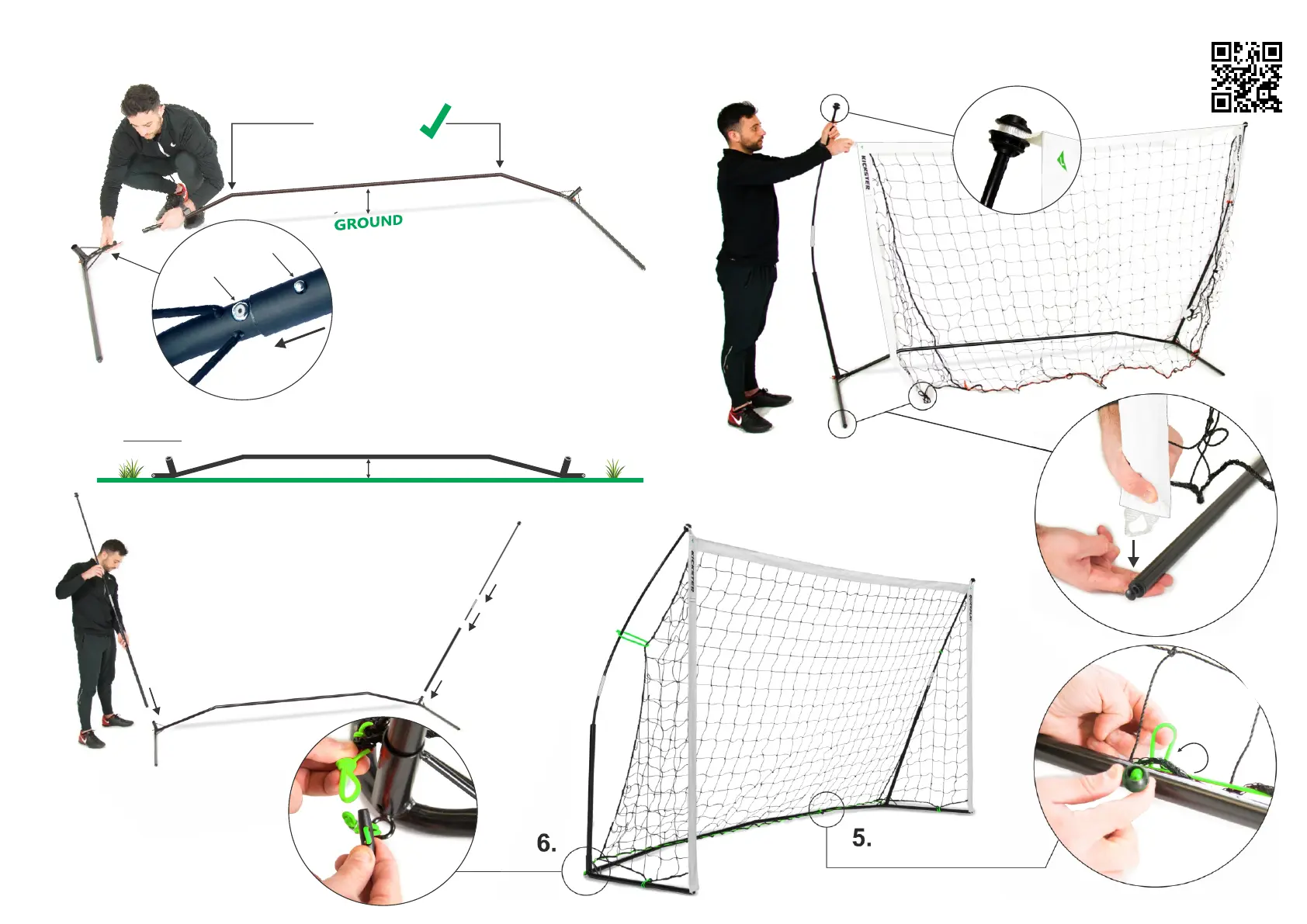 Quickplay KICKSTER - Product Setup Instructions; Step 1: Frame Assembly; Step 2: Pole Attachment; Step 3: Net Installation