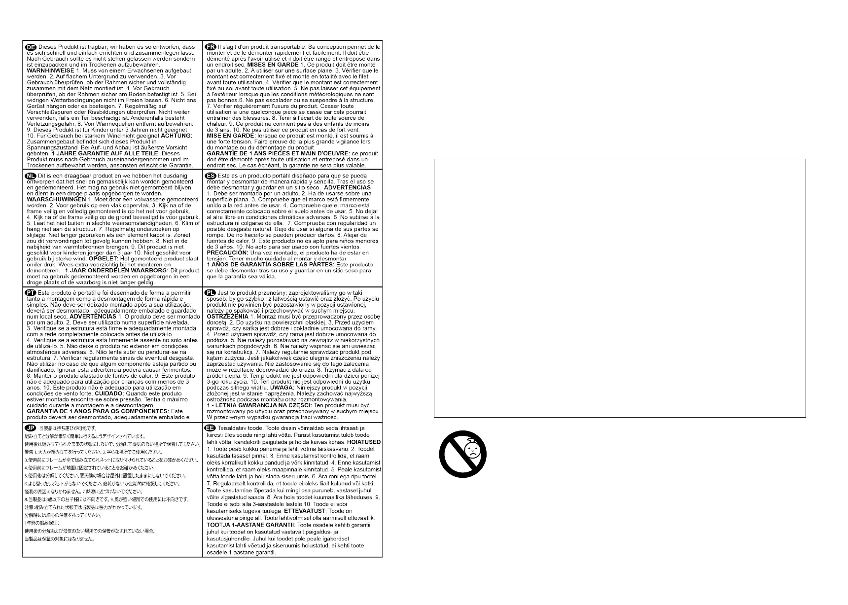 5. Disassemble after use. Do not leave outdoors in adverse weather conditions.