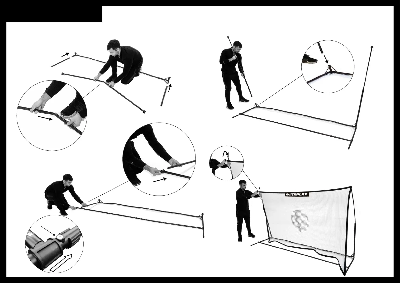 Quickplay SPOT - Setting Up; Connect Base Poles and Side Bars; Attach Support Bar; Attach Uprights