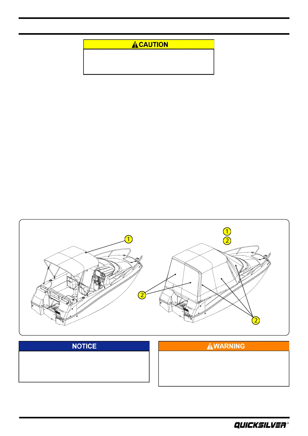 NEVER OPERATE THE VESSEL WITH THE CANVAS