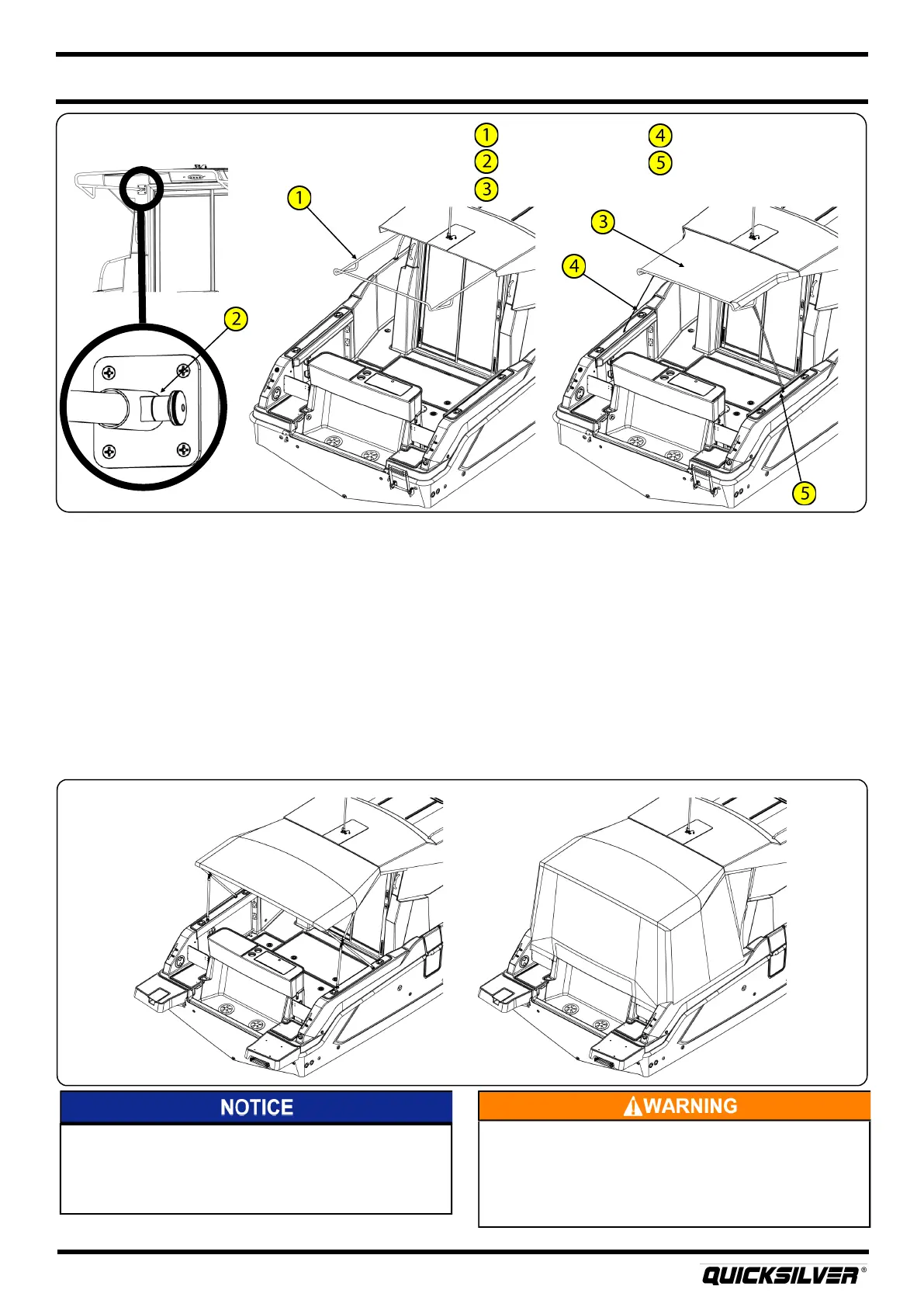 NEVER OPERATE THE VESSEL WITH THE CANVAS