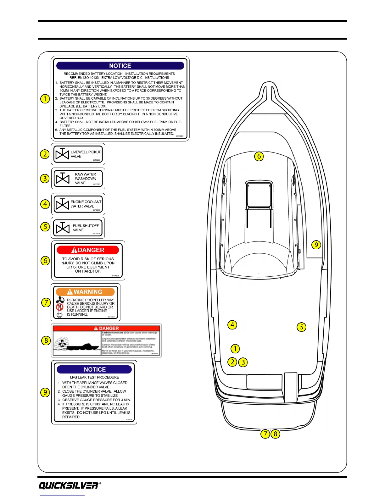Quicksilver 810 Arvor - Safety Label Locations