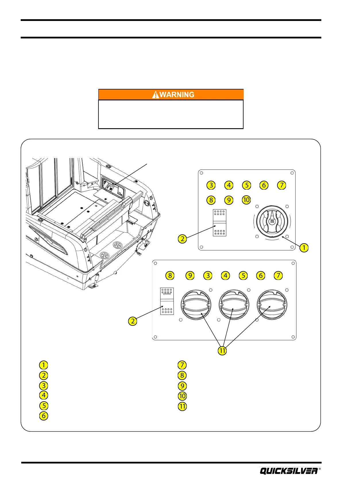 The 905WE has two 10 posion fuse panels located at the helm, behind a service access panel under