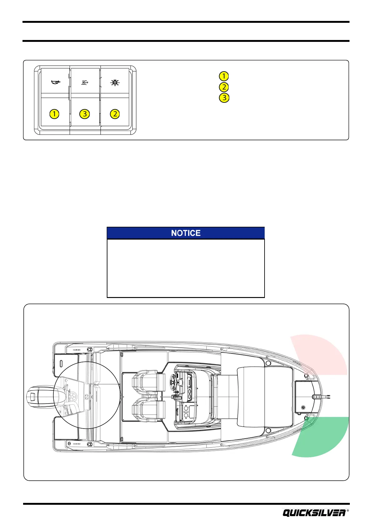 three posion switch, located at the helm switch panel, controls the navigaon lights. To turn on the