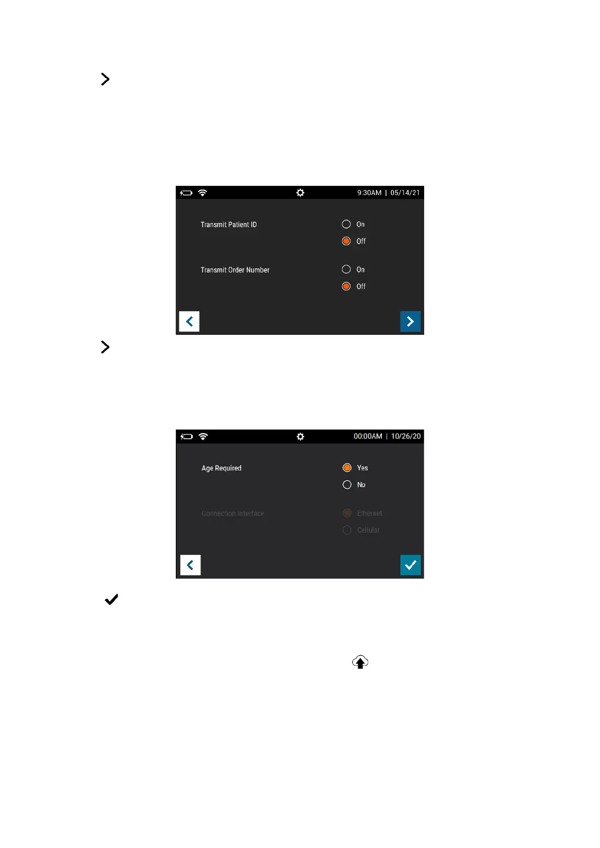 For Transmit Patient ID, select either On or Off. For Transmit Order Number, select either