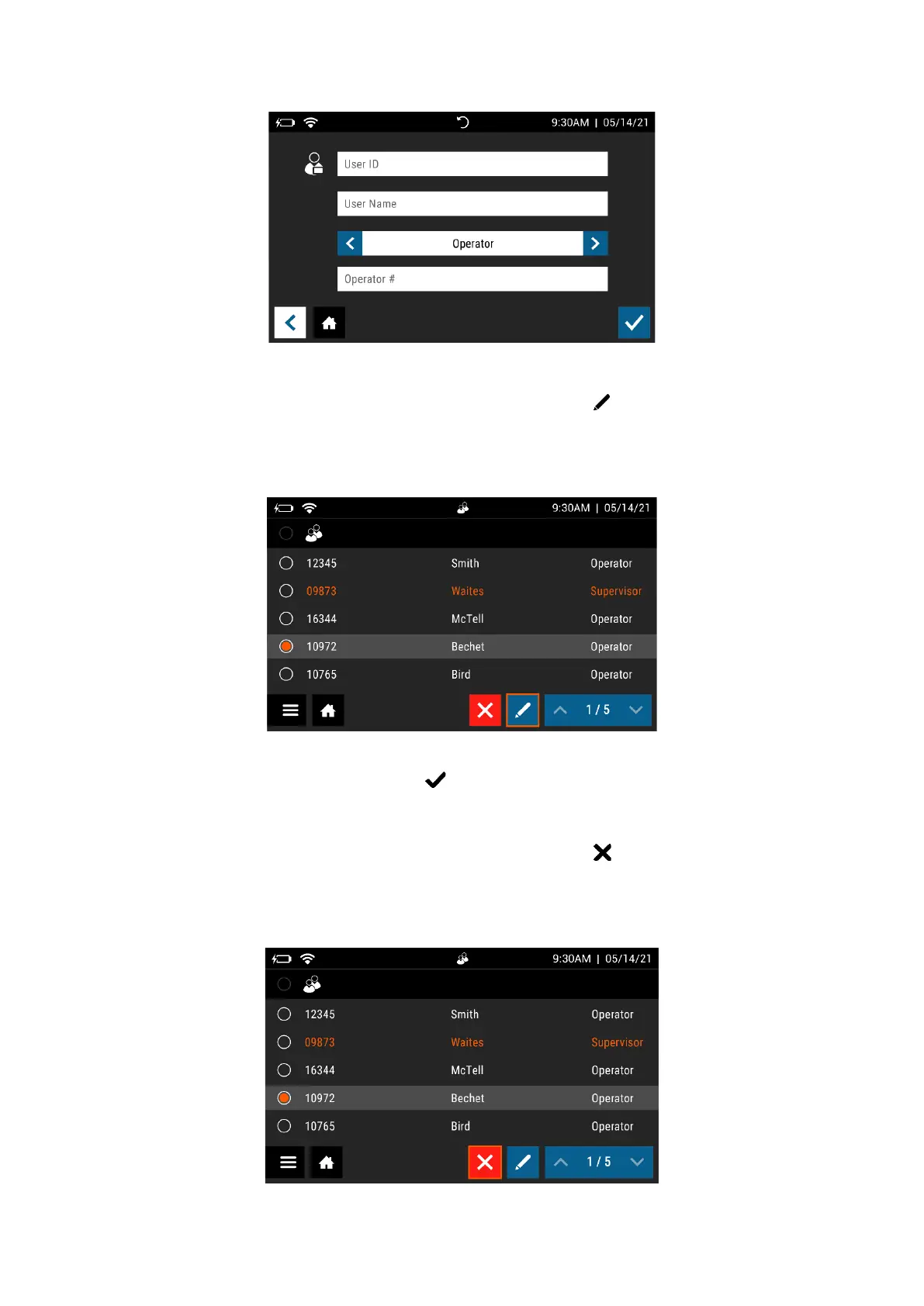 Select a User by touching anywhere within the row, then select . Use the on-screen