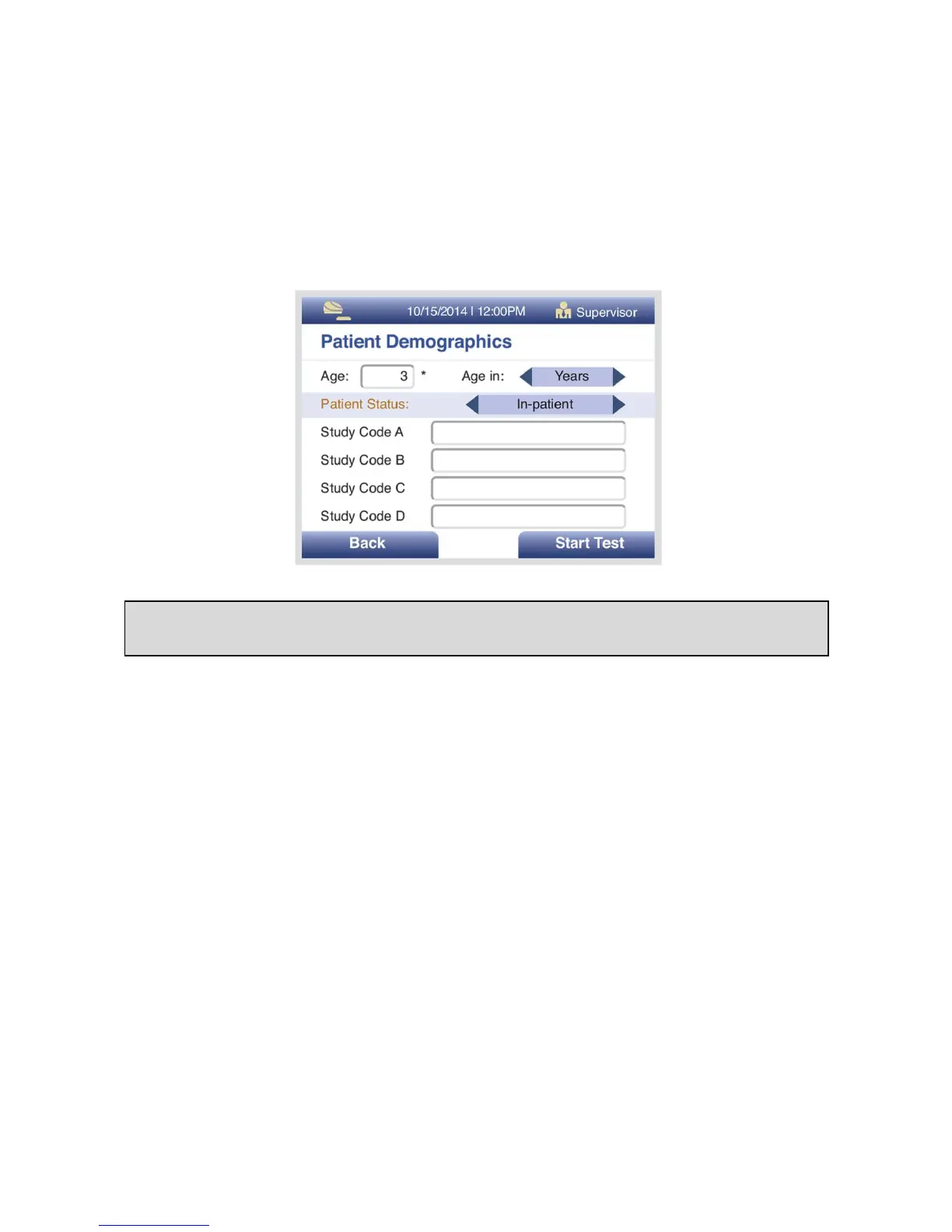 Enter (User ID, Patient ID and Order #) if required, then press Start Test.