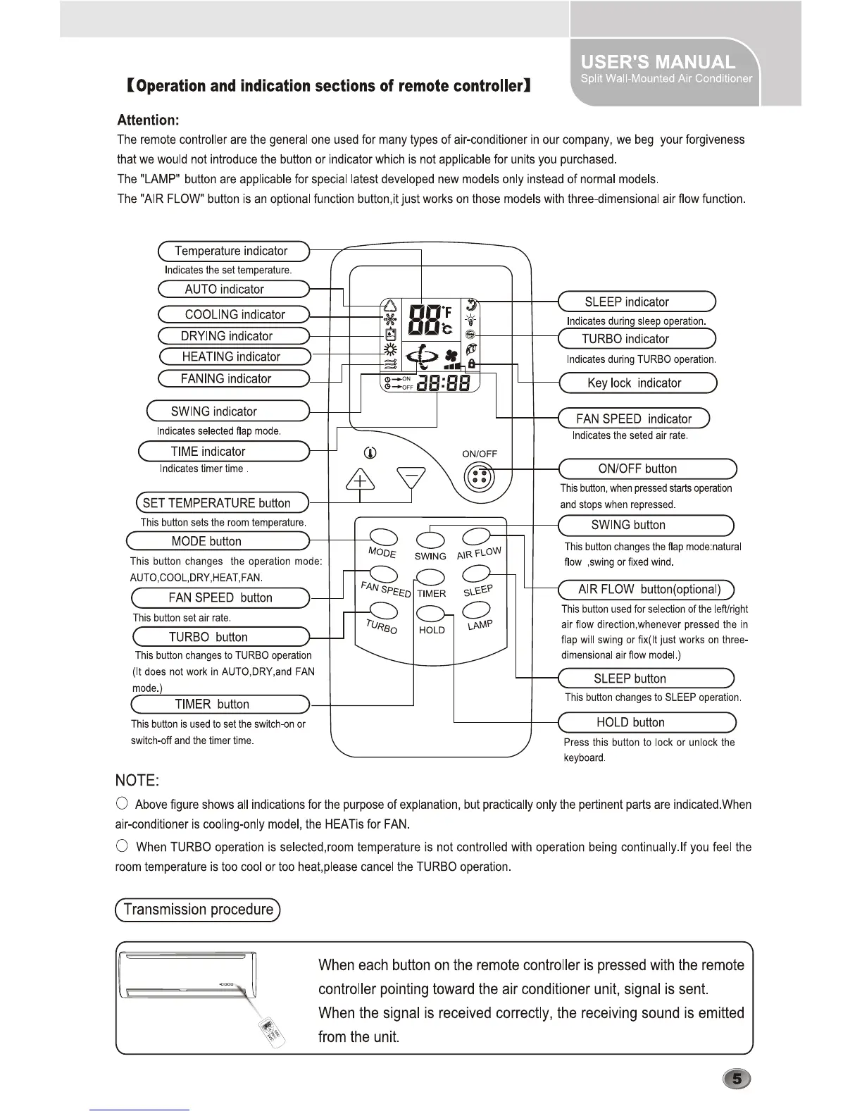 Quietside QSCE-123 - Remote Controller Guide; Controller Buttons and Functions; Controller Indicators; Signal Transmission