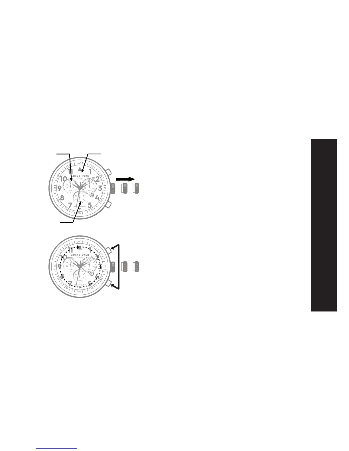 1- Pull out the crown to position III (all 3 chronograph