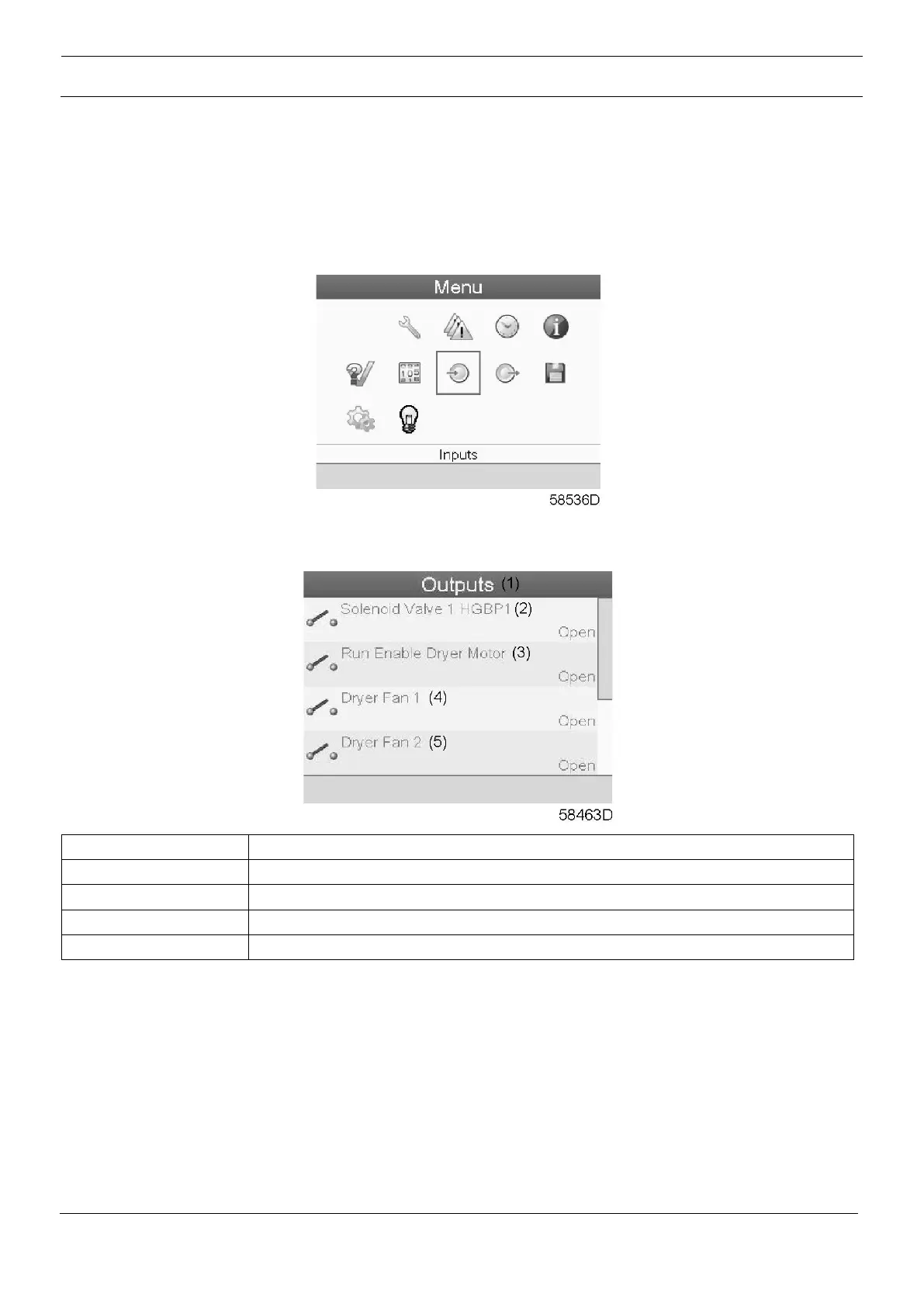To call up information regarding the actual status of some outputs such as the Solenoid valve, Dryer fan,