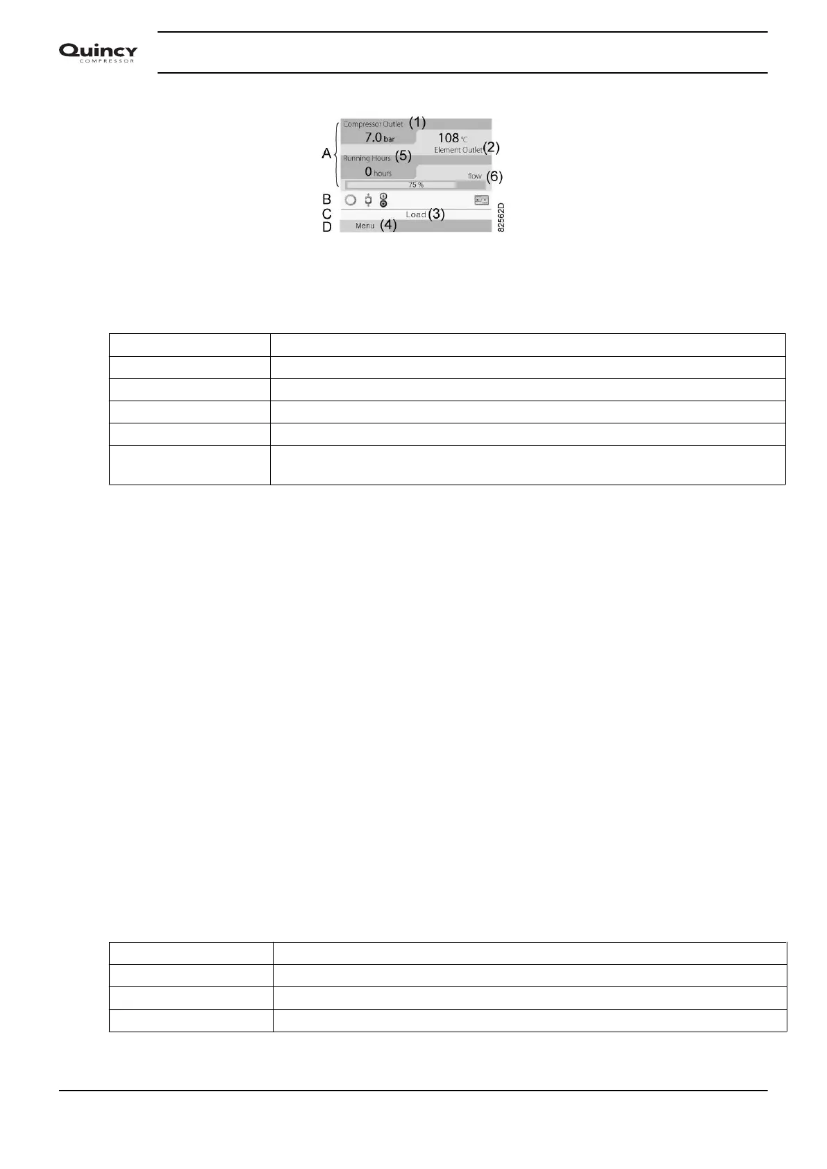 • Section A shows information regarding the compressor operation (e.g. the outlet pressure