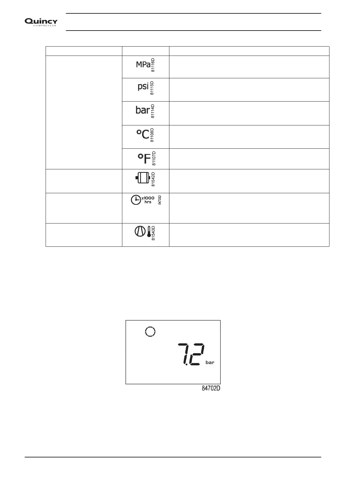 • The compressor status by means of pictographs;
