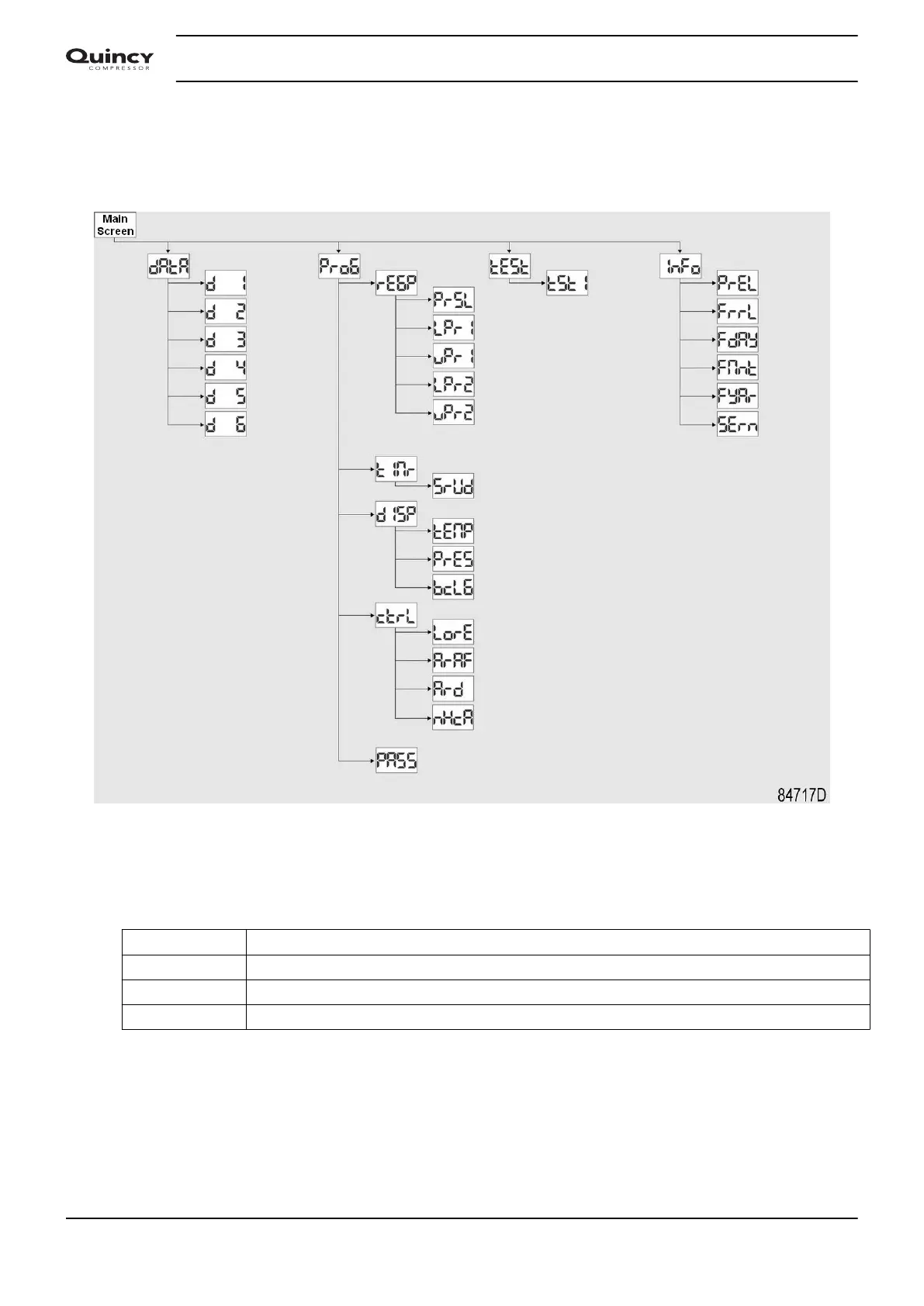 ProG Submenu of Regulation pressure, Timer, Display setting and Control setting.