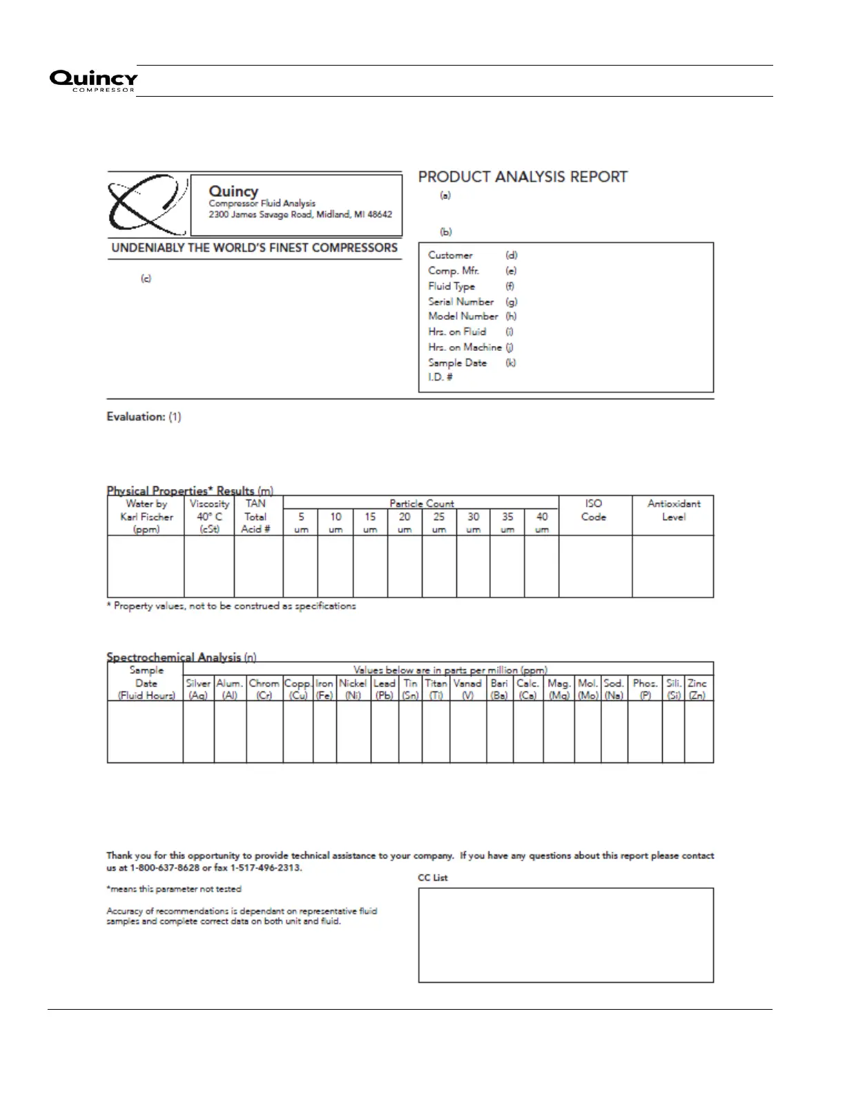 Quincy Compressor QGV 60 - Appendix 1: Product Analysis Report