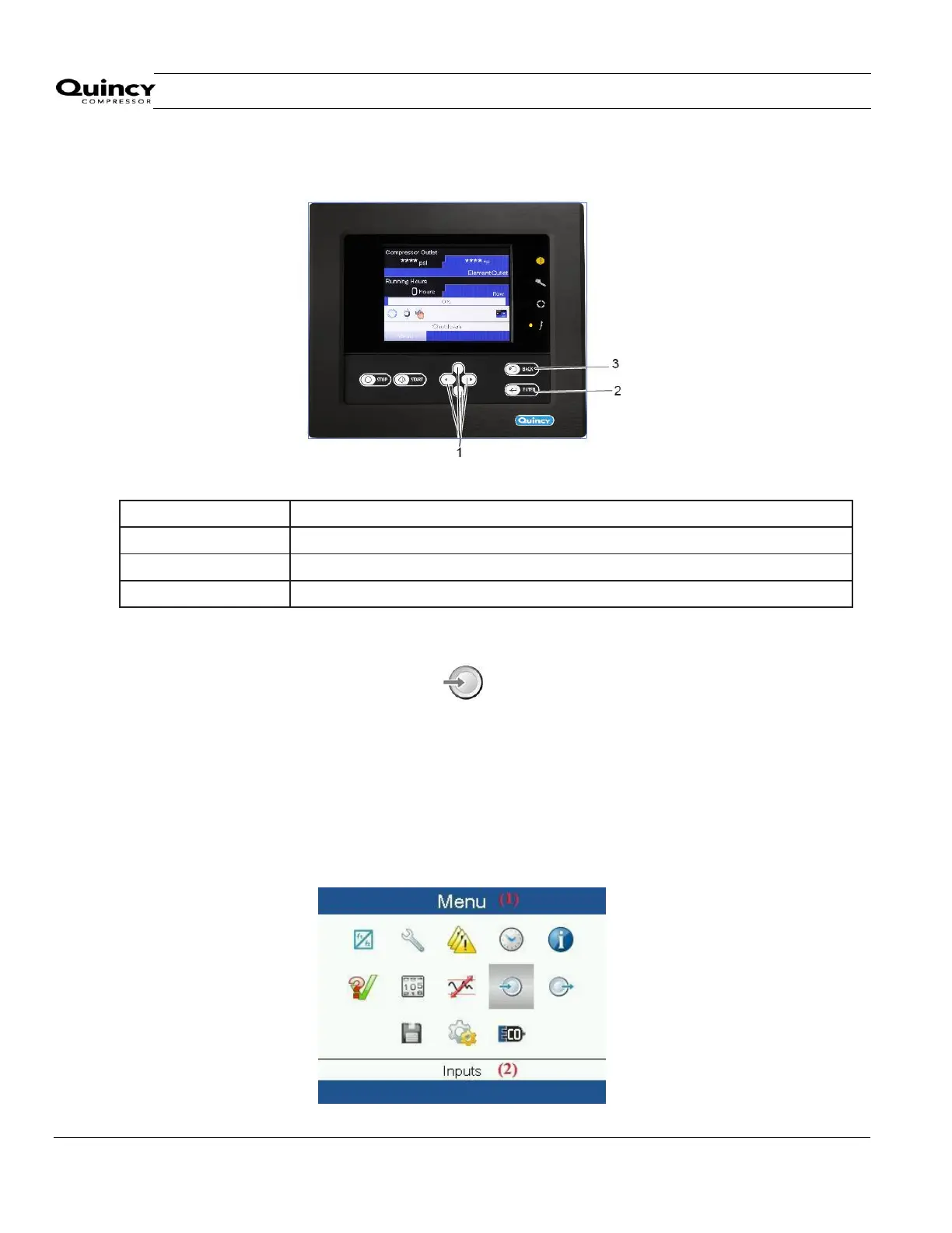 Quincy Compressor QGV 60 - Inputs Menu