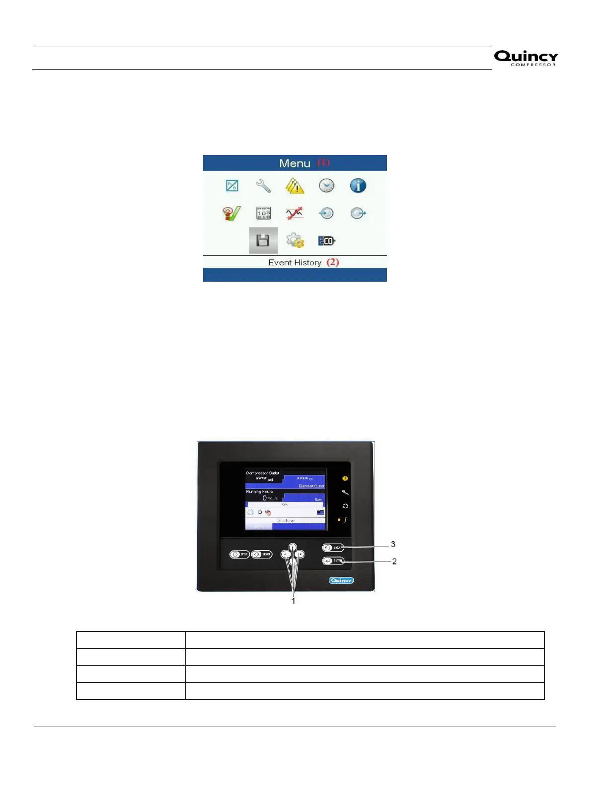 Using the Scroll keys, move the cursor to the Event History icon (see above, section Menu icon)