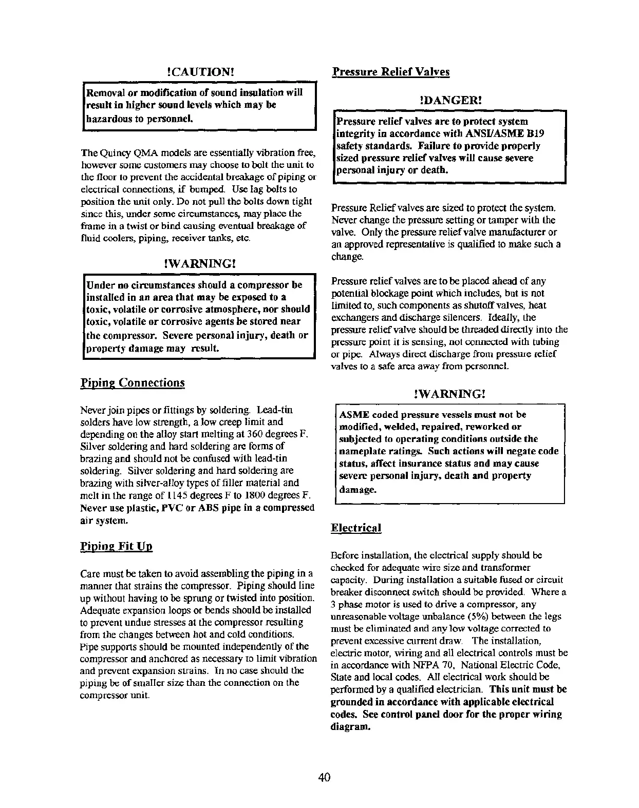 manner that strains the compressor. Piping should line