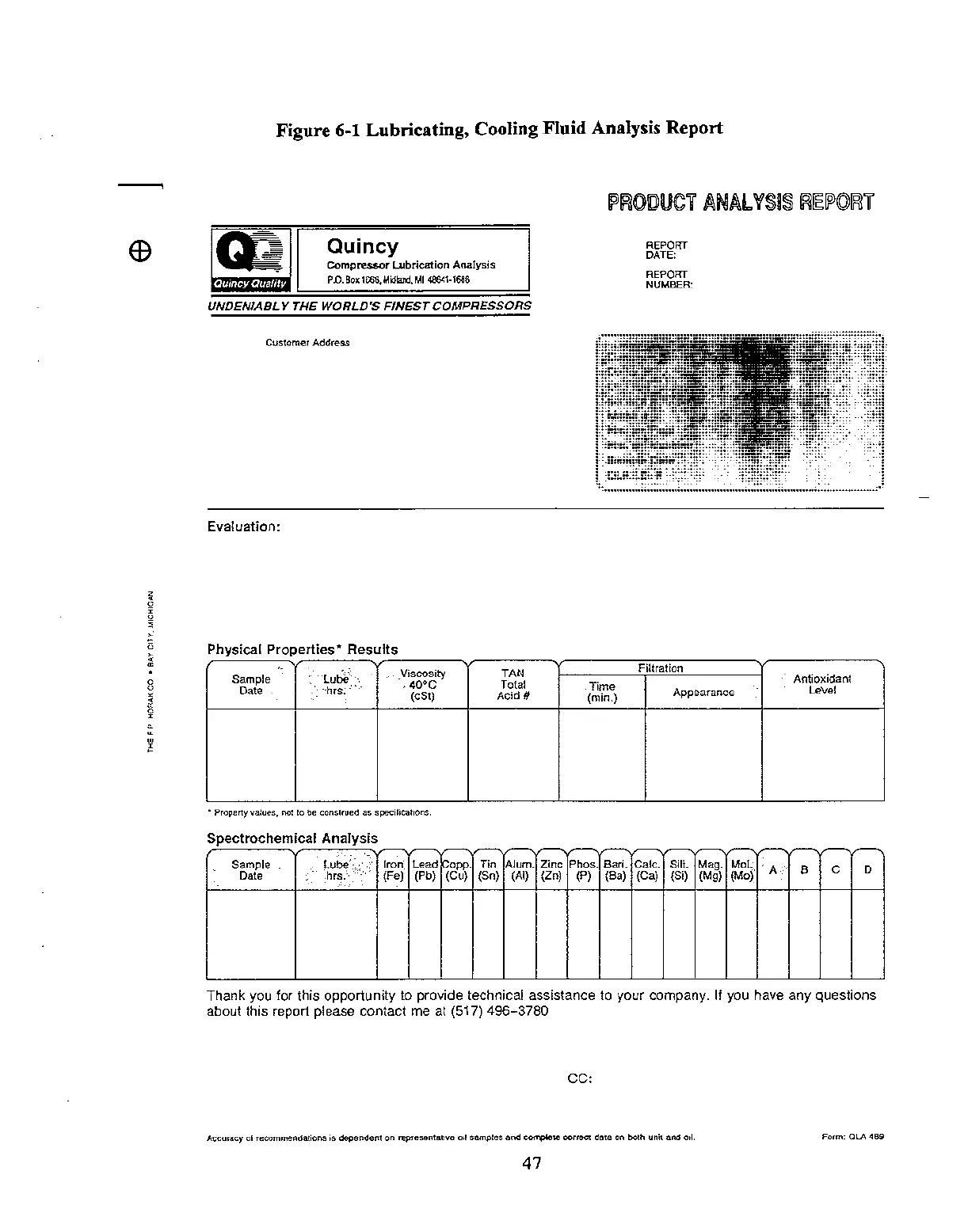 Figure 6-1 Lubricating, Cooling Fluid Analysis Report