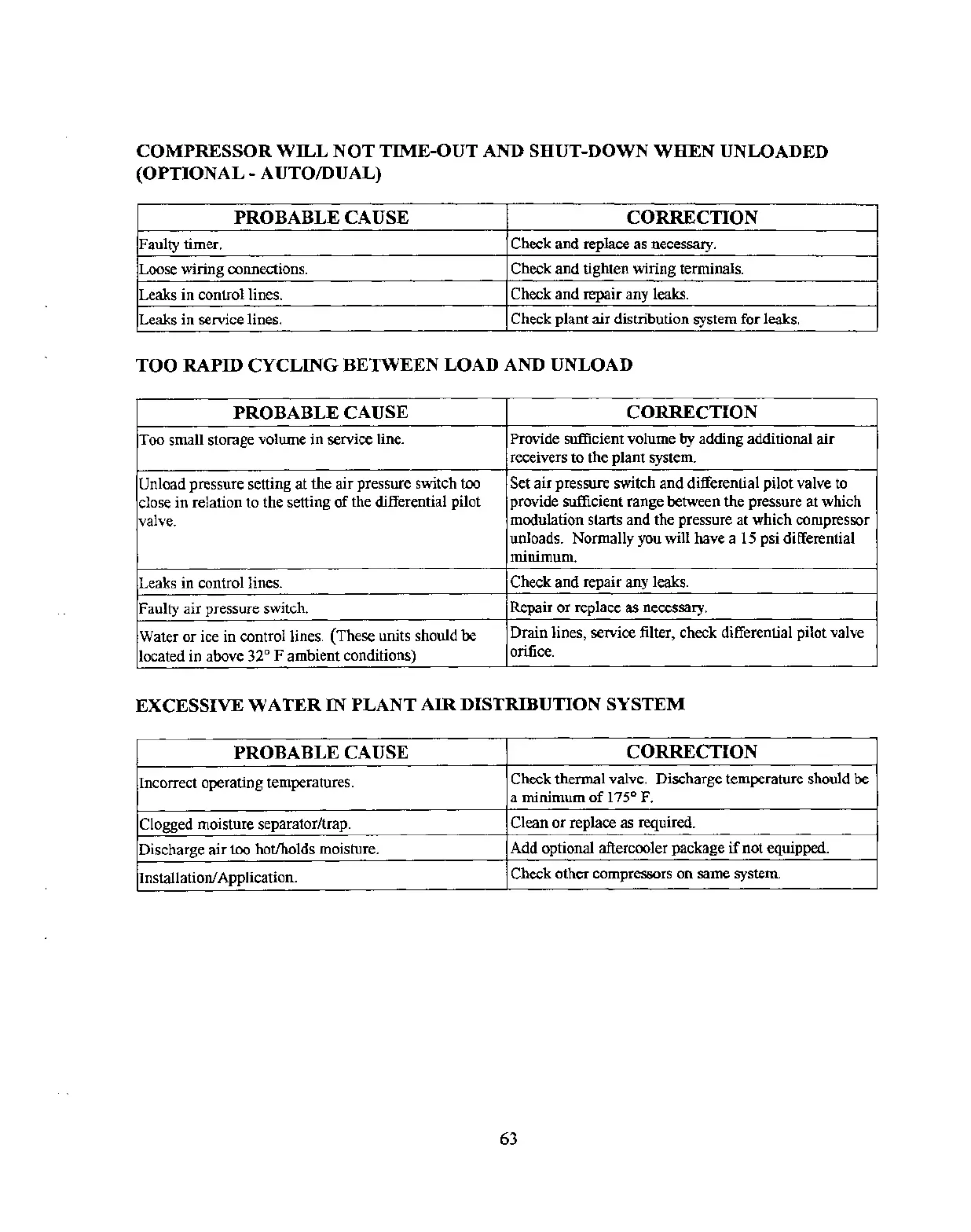 COMPRESSOR WILL NOT TIME-OUT AND SHUT-DOWN WHEN UNLOADED