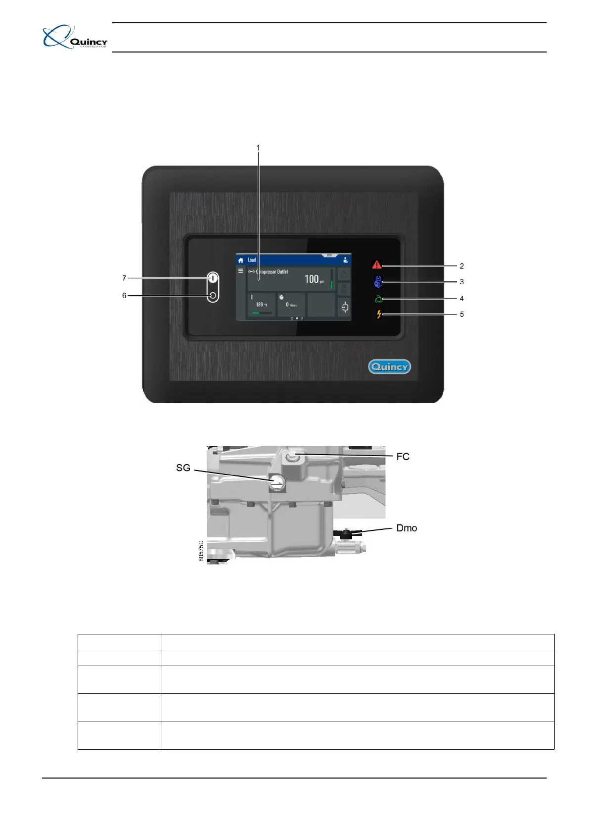 Oil filler plug (FC), sightglass (SG) and oil drain valve (Dmo)
