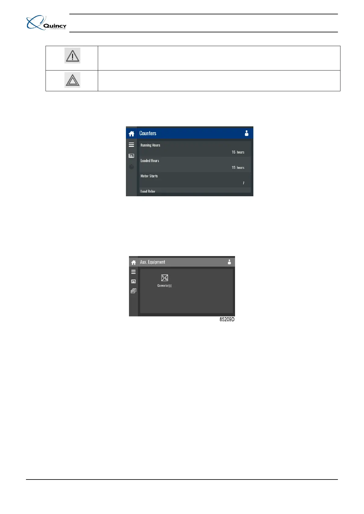 This menu shows an overview of all actual hours and counters of the unit and controller.