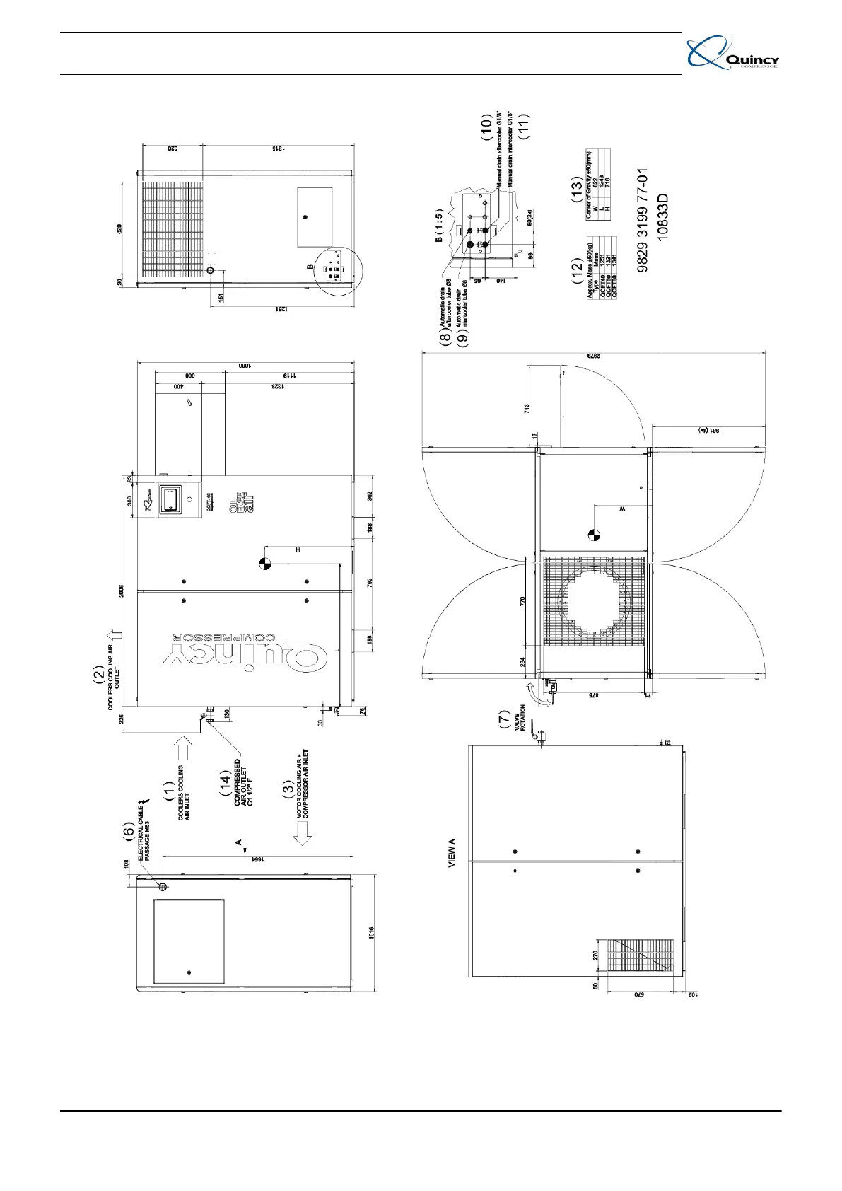 Dimension drawing, QOFT 40 up to QOFT 60 compressor