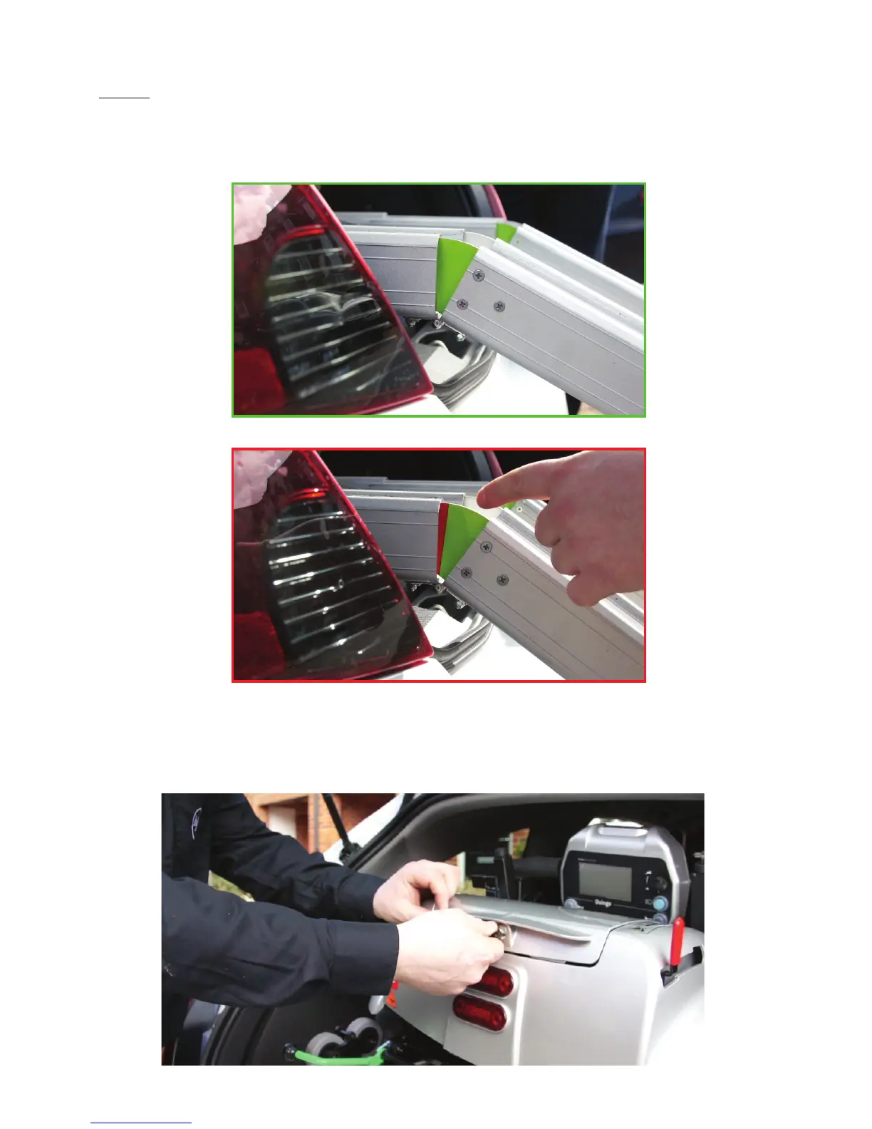 d) Check that the ramp maximum angle indicator is showing green only and is not in the red