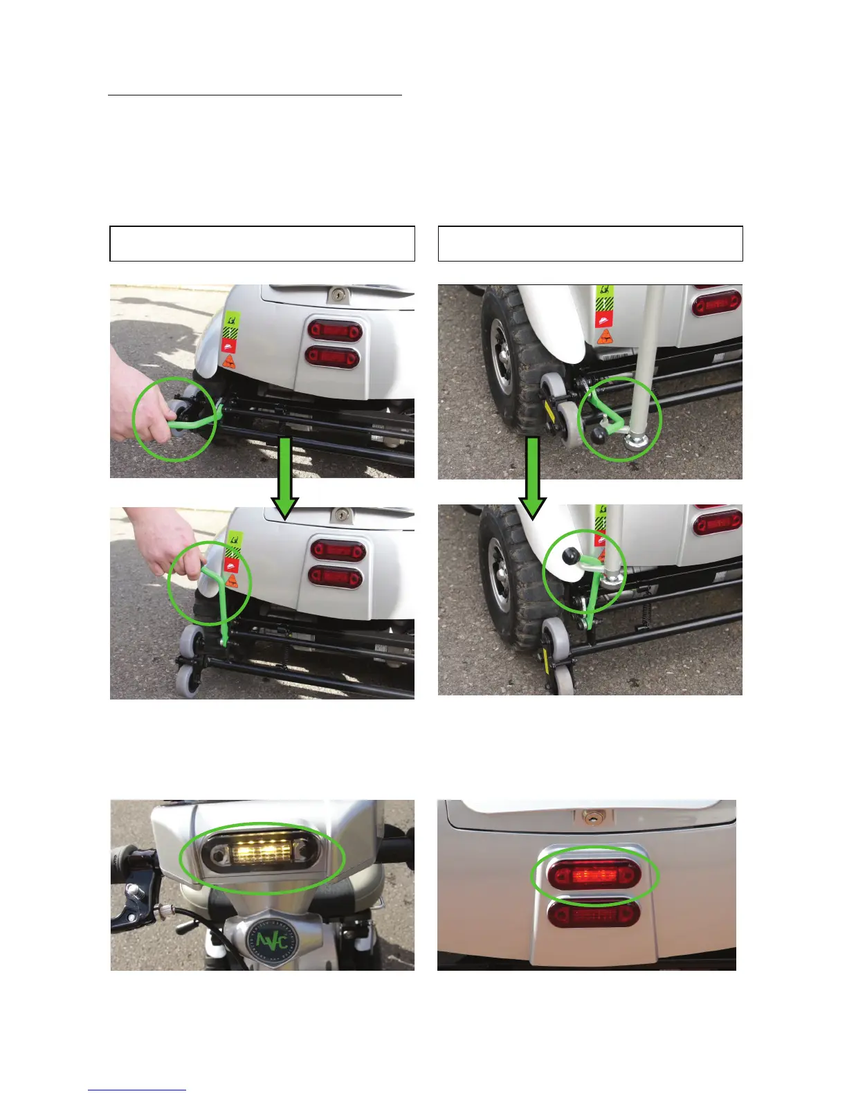 a) The rear green lever must be set to ‘Drive’ mode. Pull the lever up, the rear and front