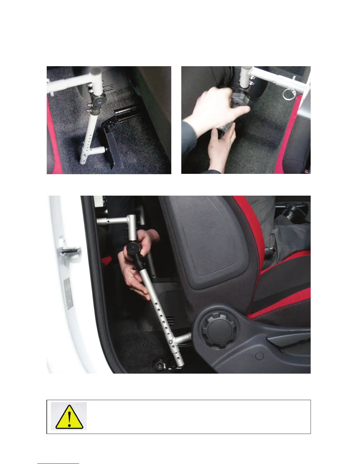 base of the front seats. Re-tighten the thumb screws. The angle set should allow the seat-
