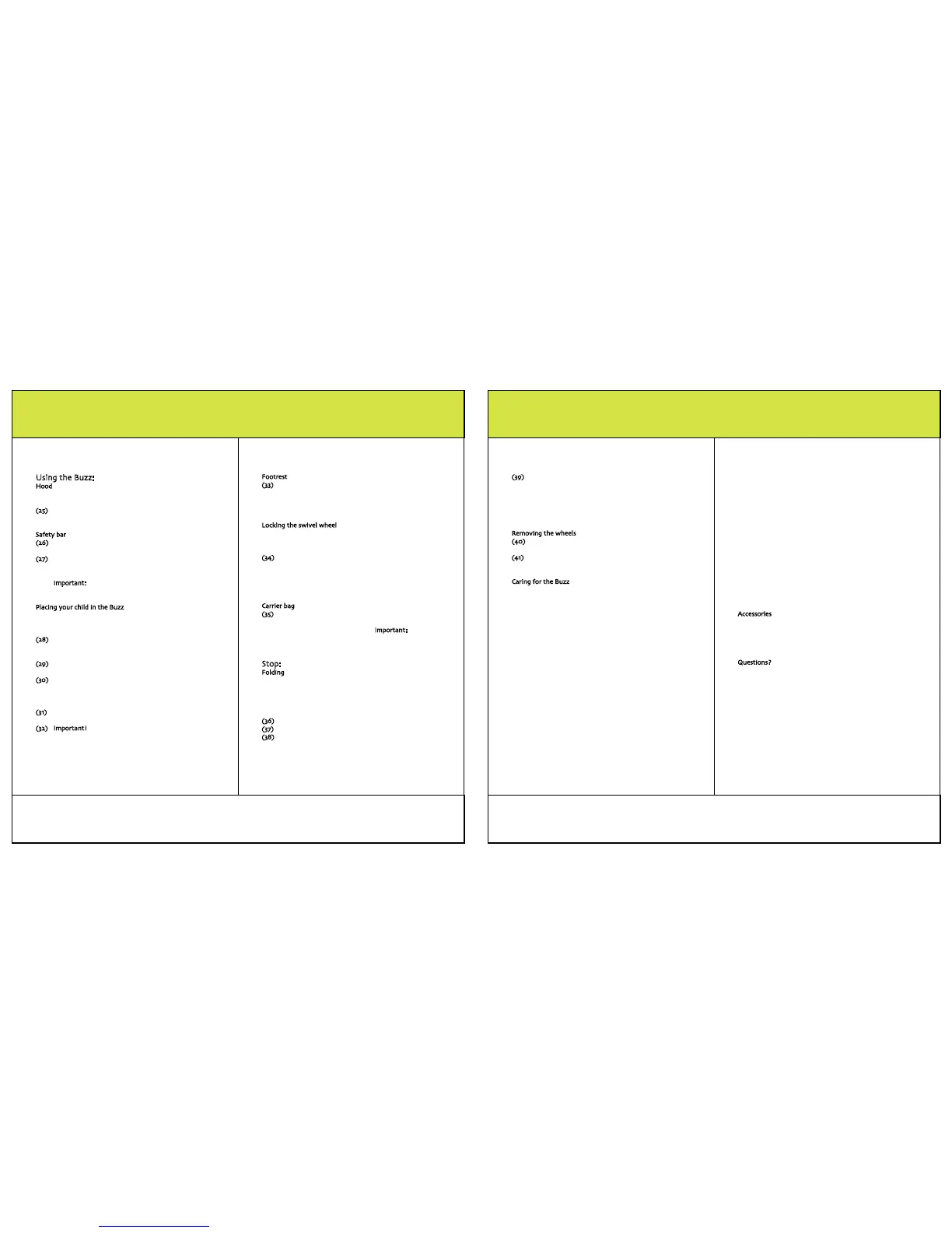 (33) The foot and leg rest on the Buzz seat can be adjus-