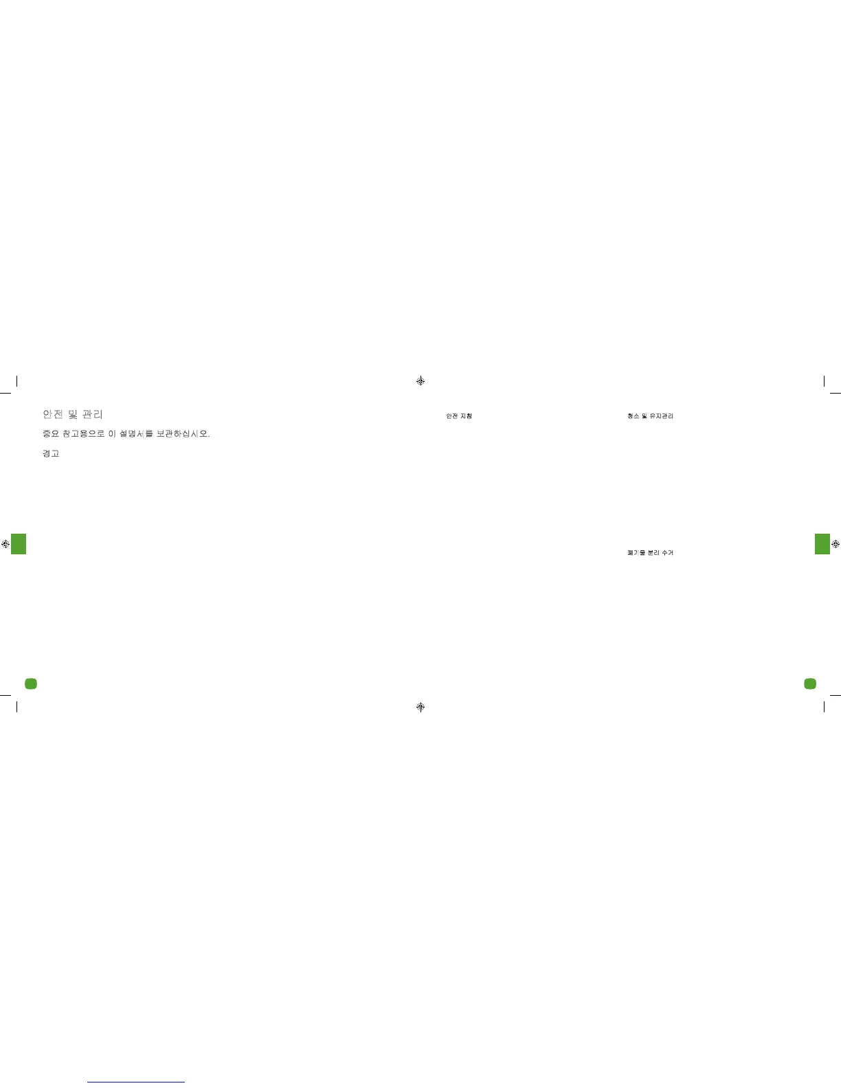 • 질식의 위험을 방지하기 위해 모든 비닐 백이나 덮개는 아기나 어린이의 손이 닿지 않는 곳에