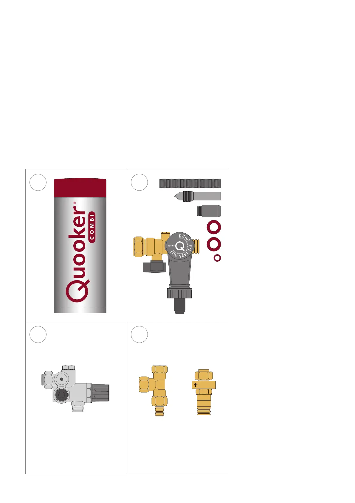3. Quooker inlet combination valve, waste hose, Quooker drill bit, PVC