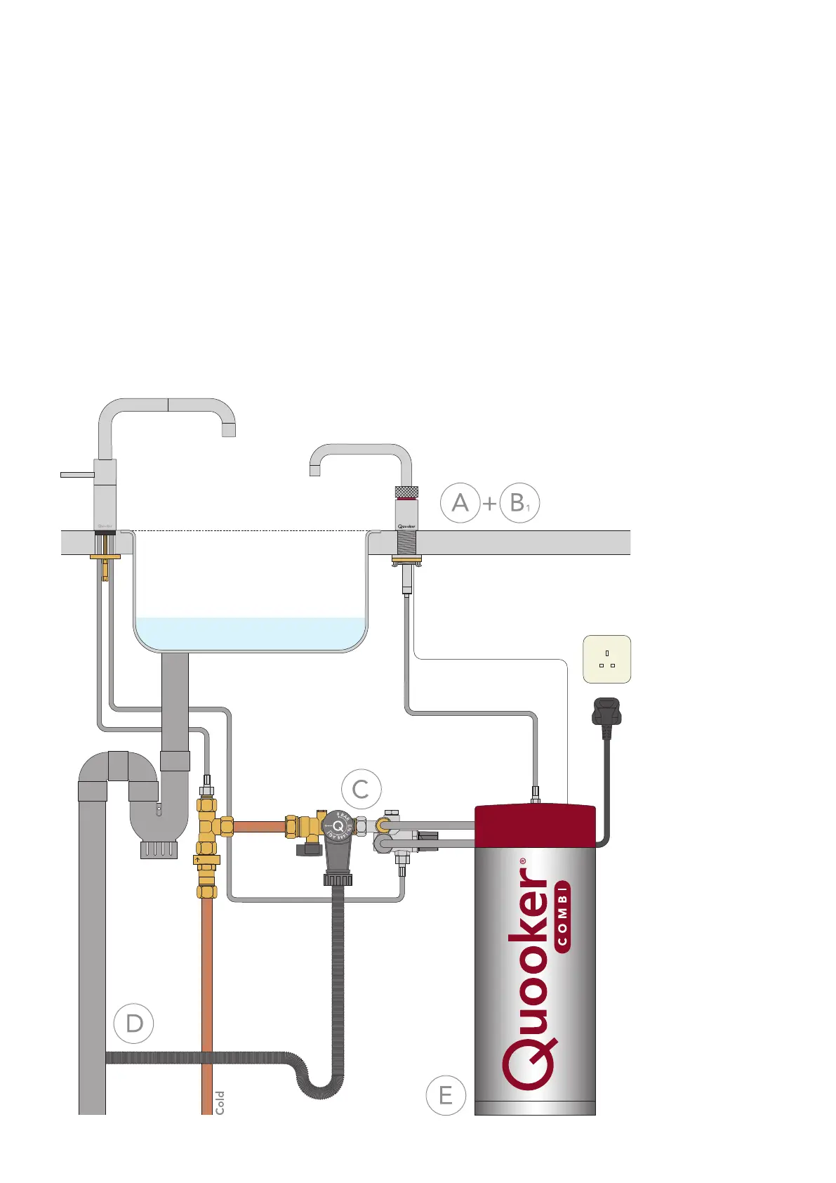 Note: Bear in mind that the tank, inlet combination valve, mixing valve and