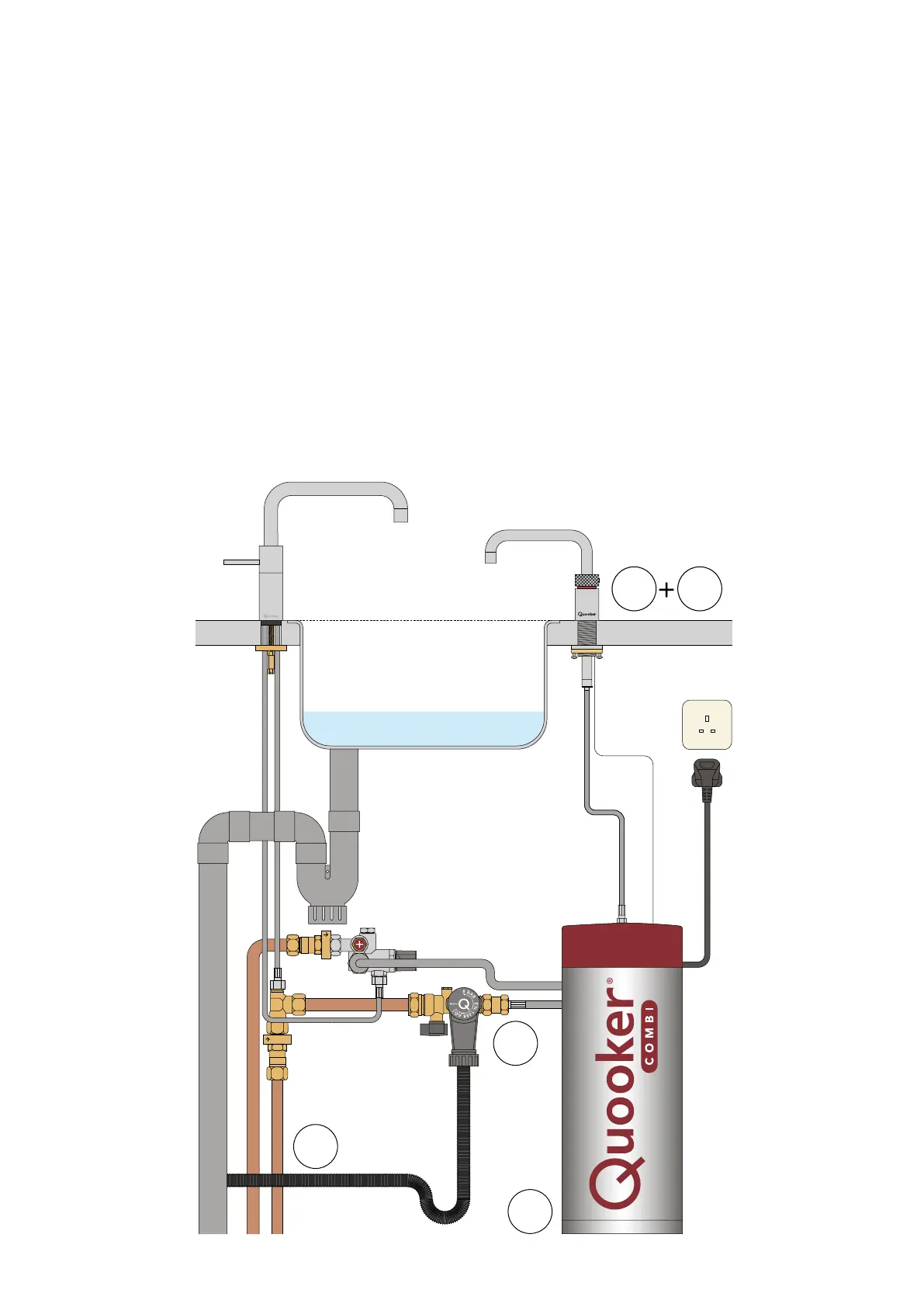 Note: Bear in mind that the tank, inlet combination, mixing valve and socket must remain