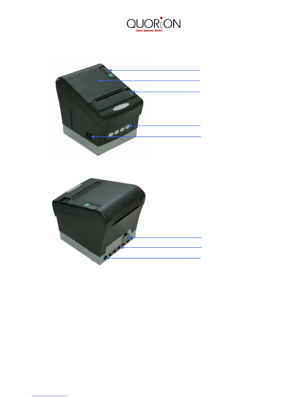 Control panel: LED’s to indicate printer status and paper feed key.