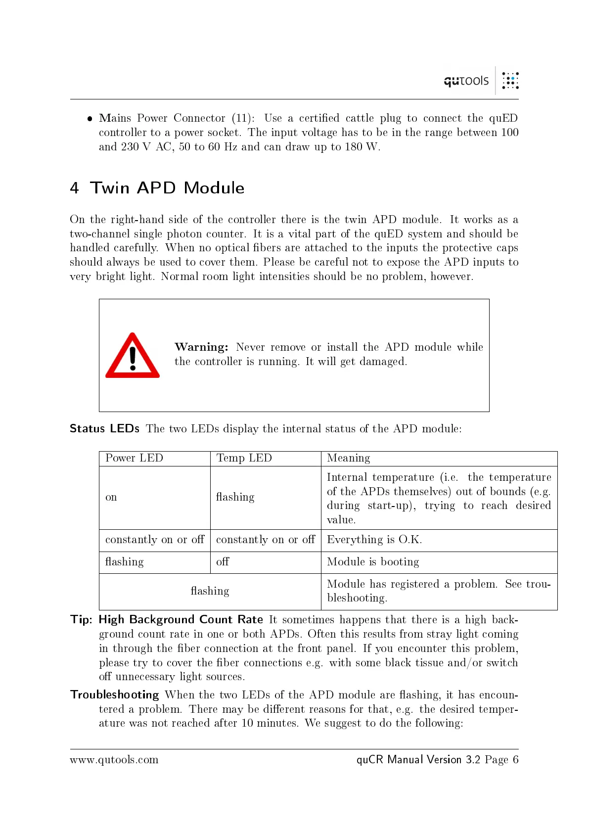 should always be used to cover them. Please be careful not to expose the APD inputs to