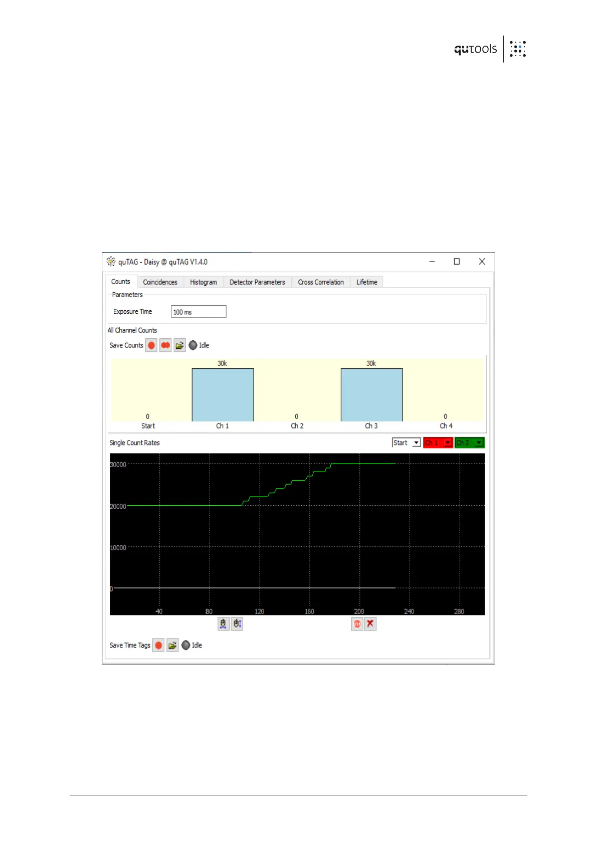 All single counting rates for each channel individually are displayed in the "Counts" Tab shown in