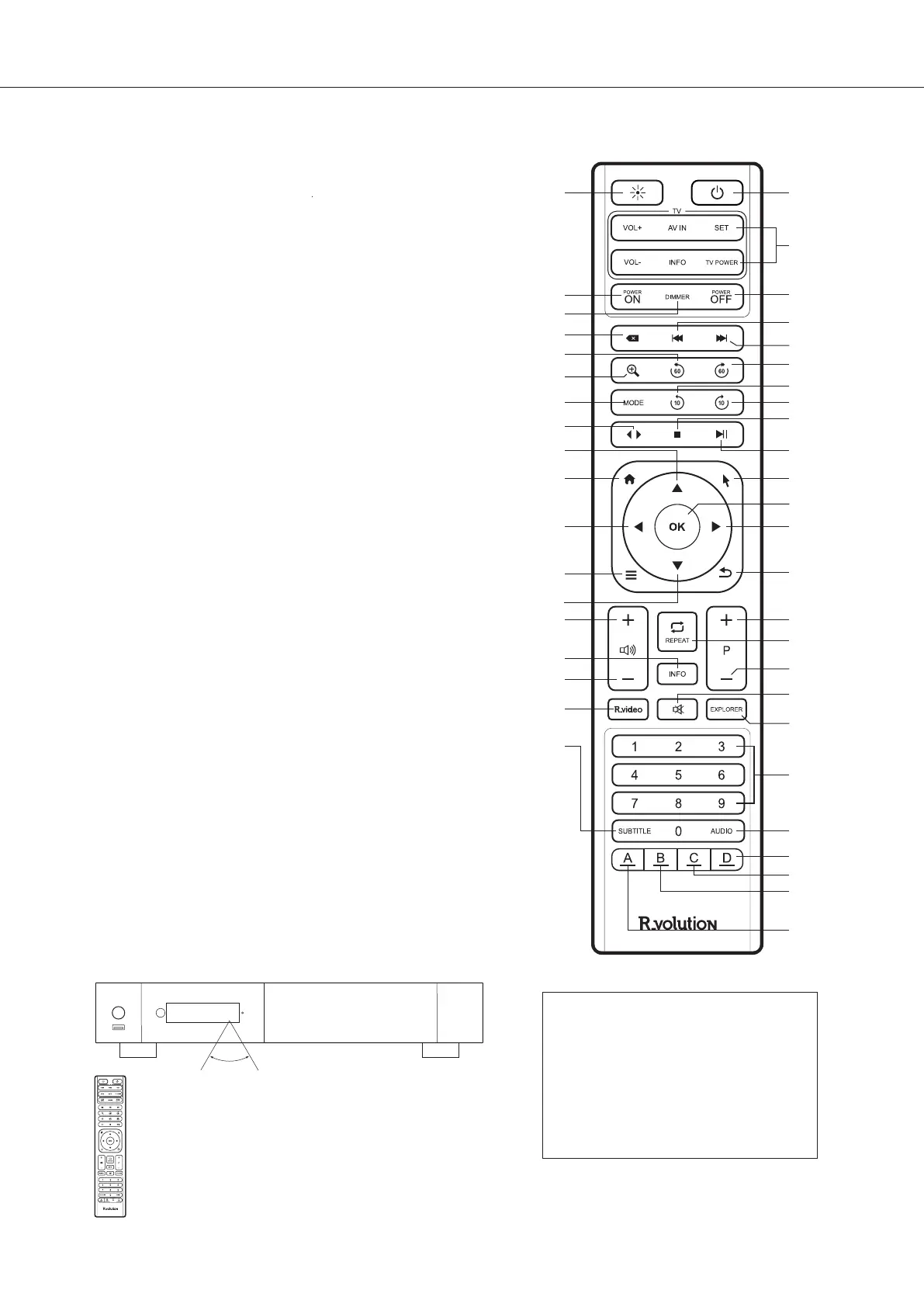 28-29. VOLUME +/-: Increase / Decrease volume.