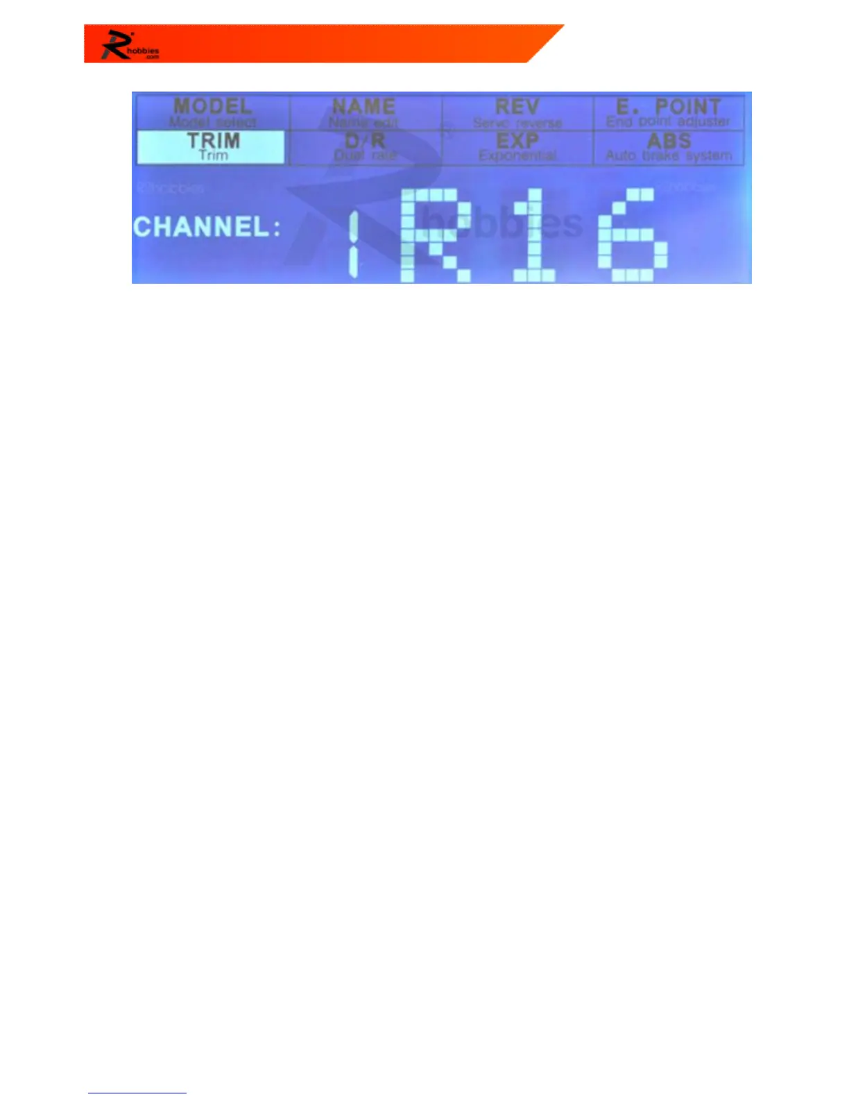 - Use this function to adjust the neutral position of the steering, throttle and channel 3 servos.